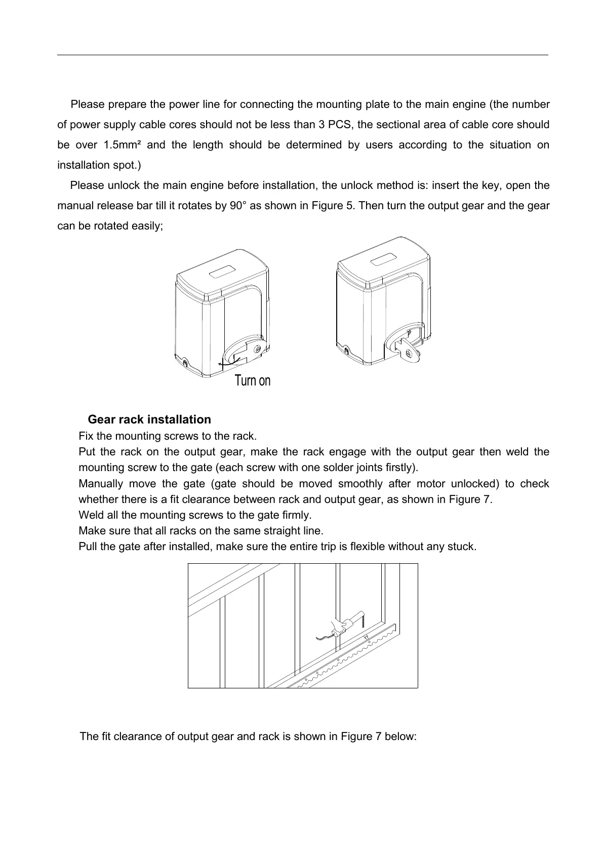 manual release bar till it rotates by 90° as shown in Figure 5. Then turn the output gear and the gear