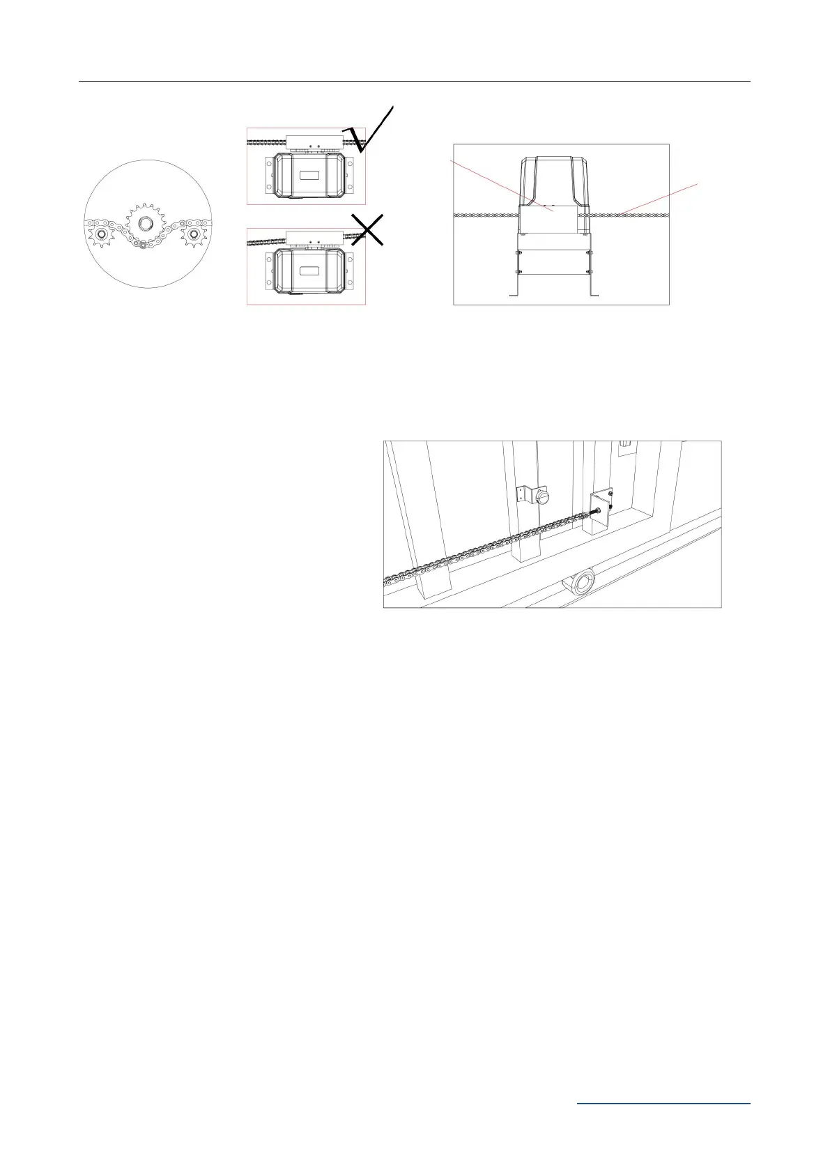 · Fit limit switch stop onto the top of chain at the point where it meets the magnetic limit switch on