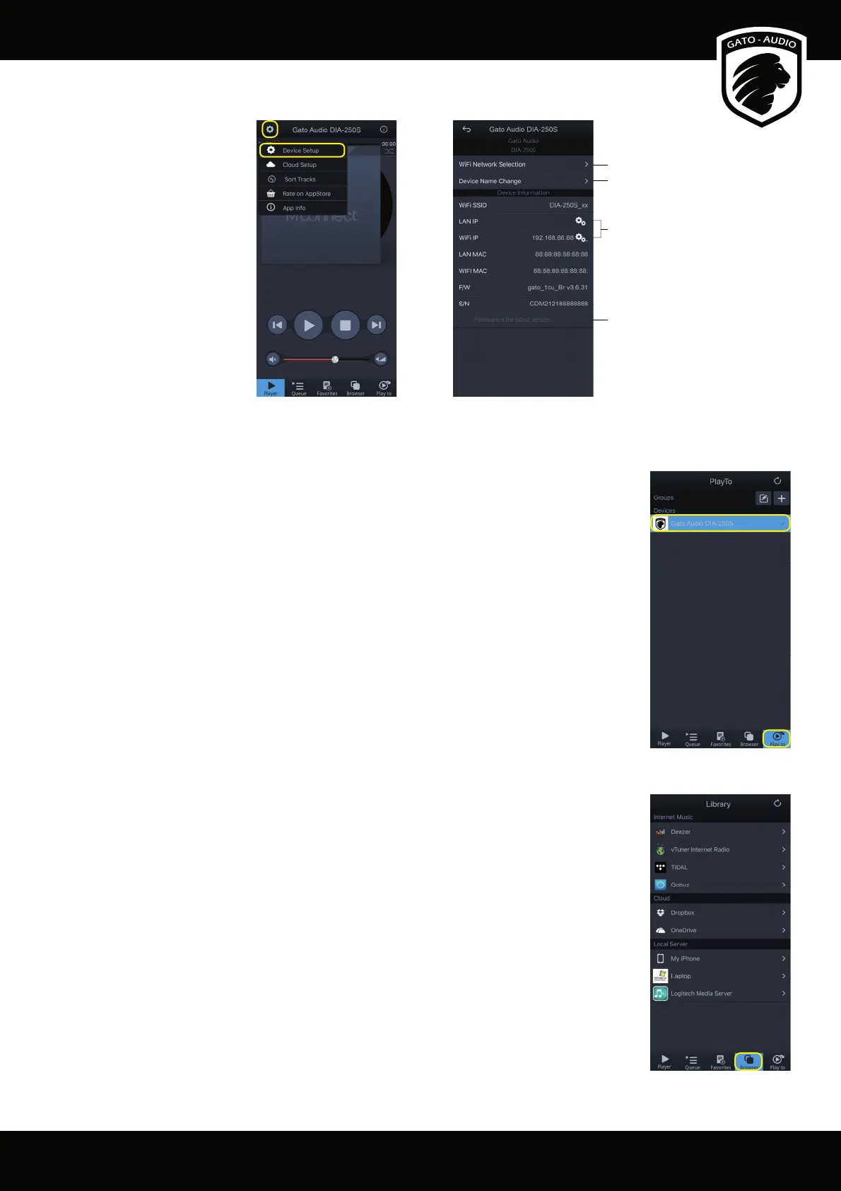 From the “Player” screen press the “Setup” icon on the to left corner and select “Device Setup”. Then select the device you