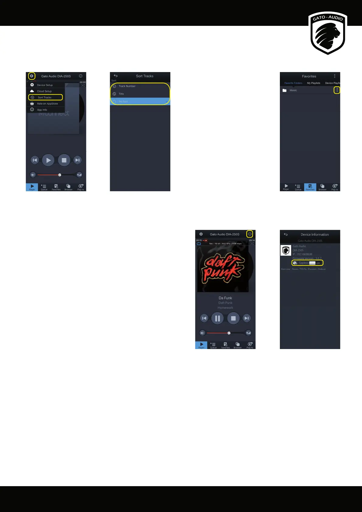 From the Player screen press the “Setup” icon on the to left corner and select “Sort Tracks”. In the “Favorite Folders” list in the “Favorite”