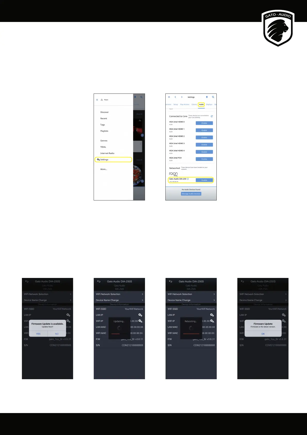 In Roon, go to Settings and choose Audio... ...scroll down and enable your Gato Audio device.