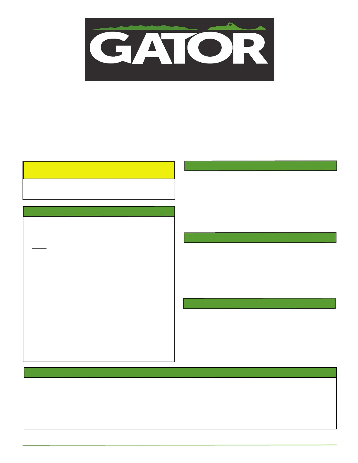 purchase. Alteration to, improper installation, or misuse of this product voids the warranty. Gator Covers liability