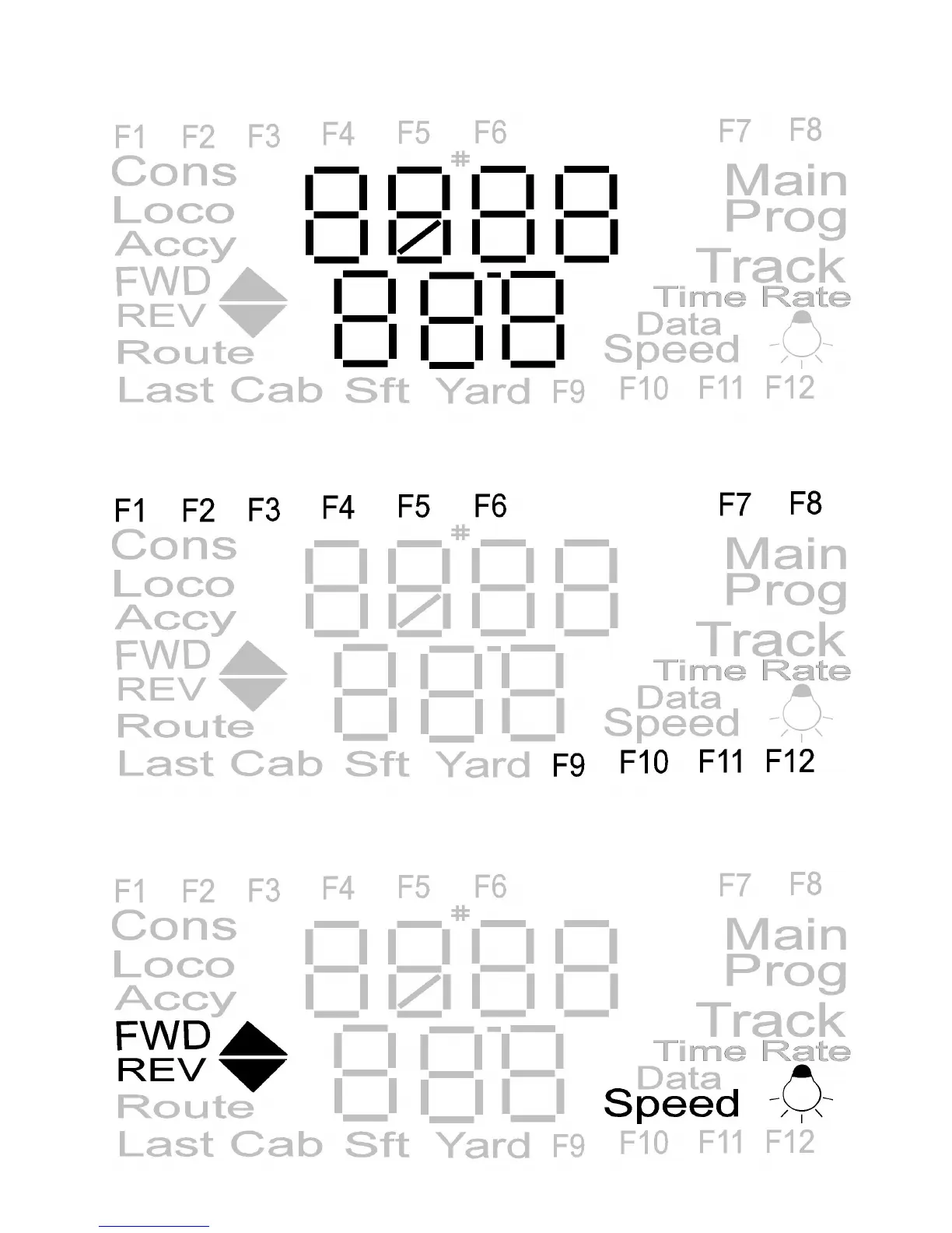 FWD / REV and SPEED icons display the loco speed and direction of travel