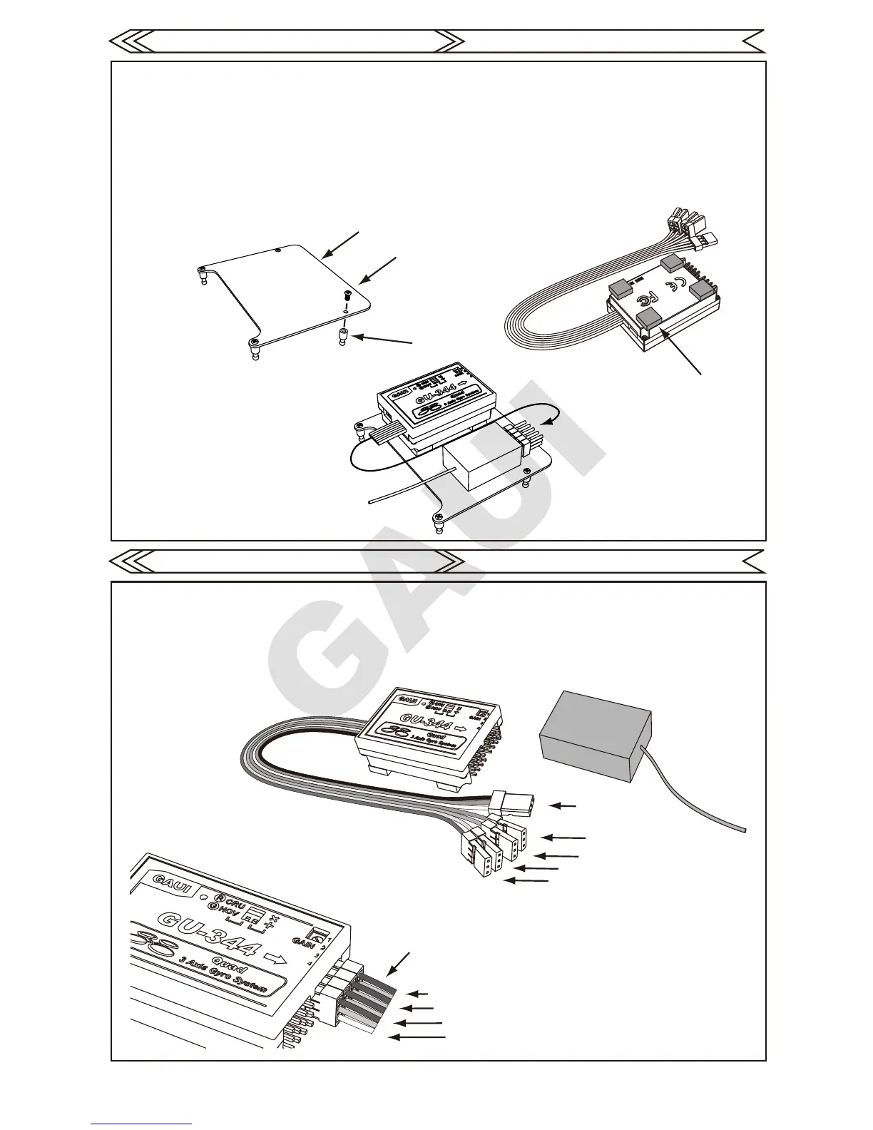 Connect the ESC cables to the GU-344 & Receiver to GU-344 (see drawing).