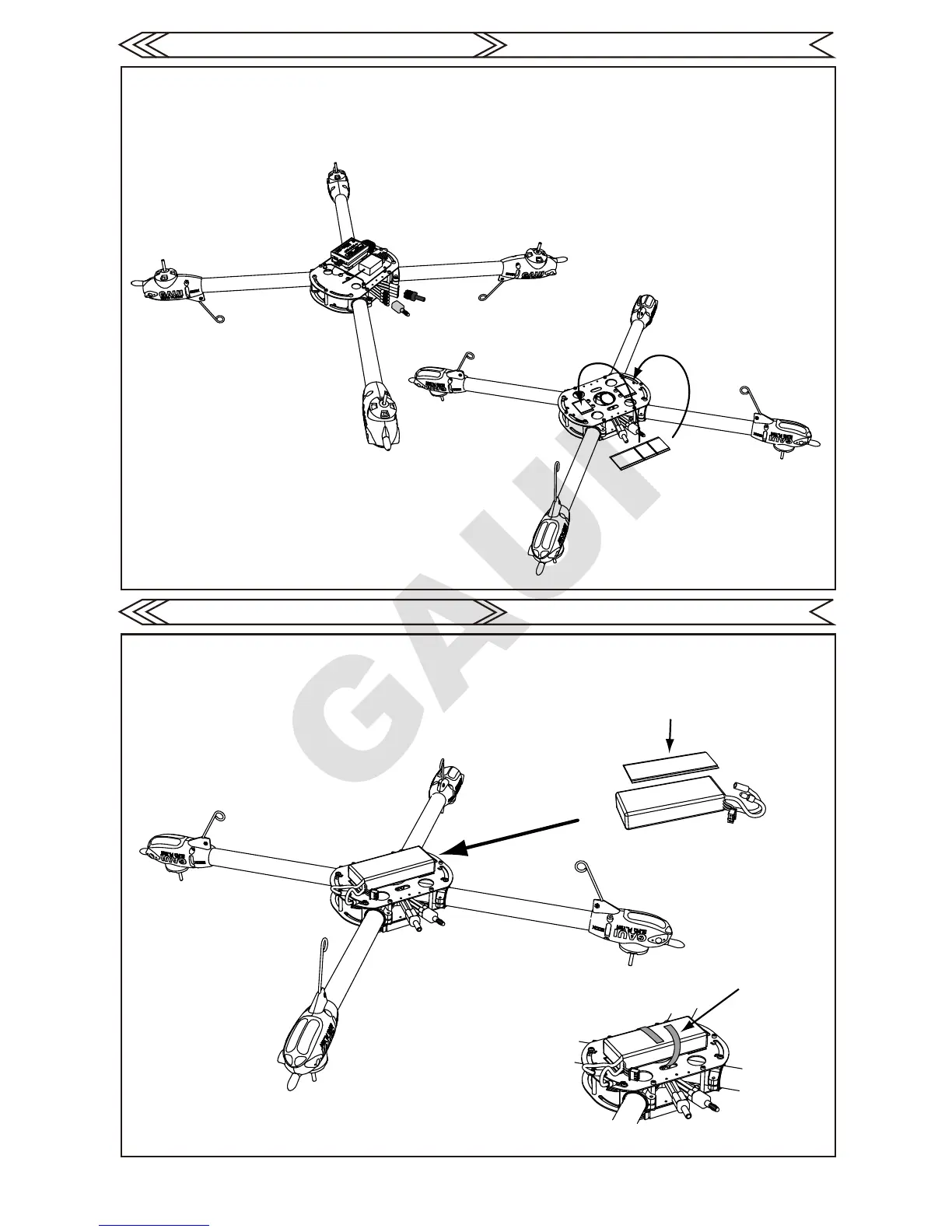 (If the battery is too heavy, you can also use GAUI cable tie with touch fastener to secure