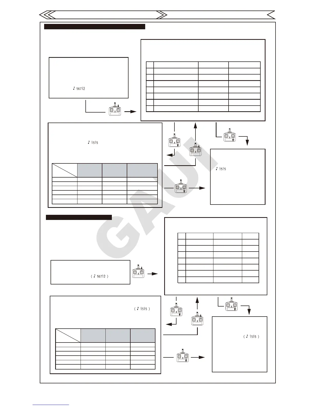 使用遙控器油門搖杆設定參數分為四個步驟: