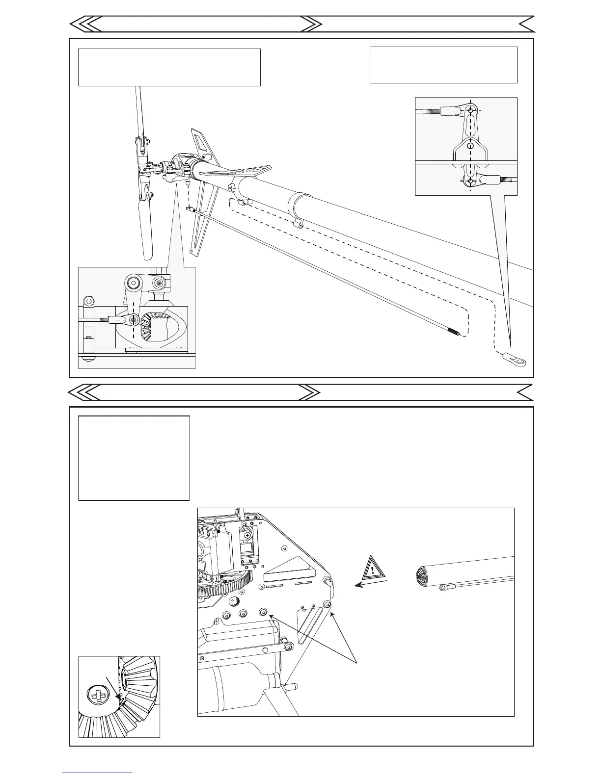 Insert the tail push rod through the guides then adjust