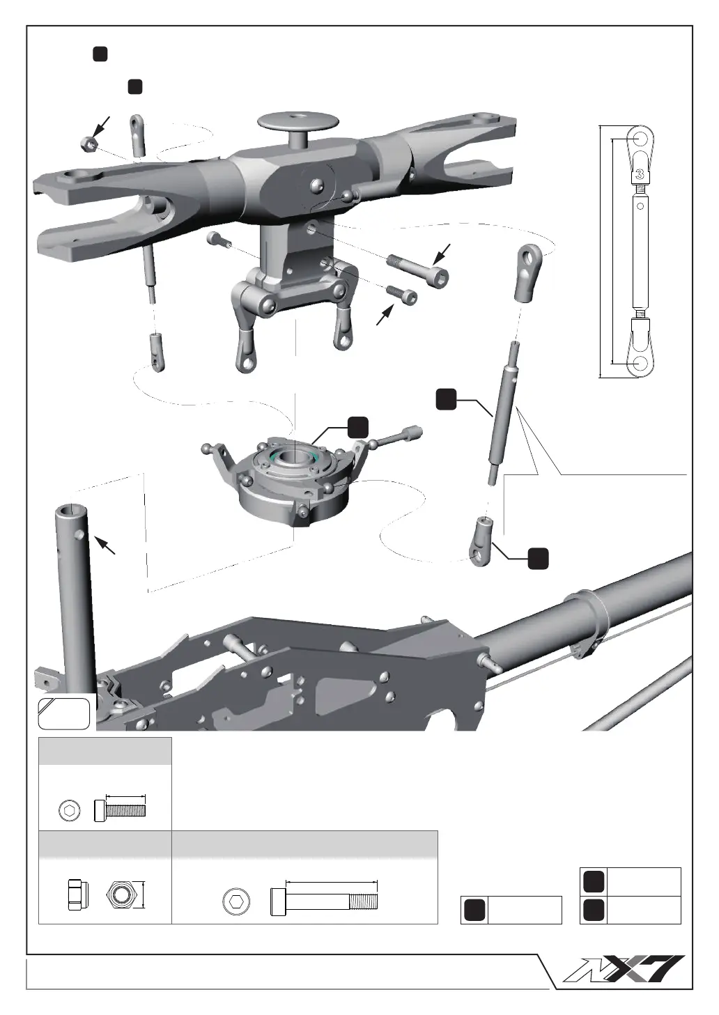 1. Install blade rotor head to main shaft and tight M4x23 screw then tight M3x10.