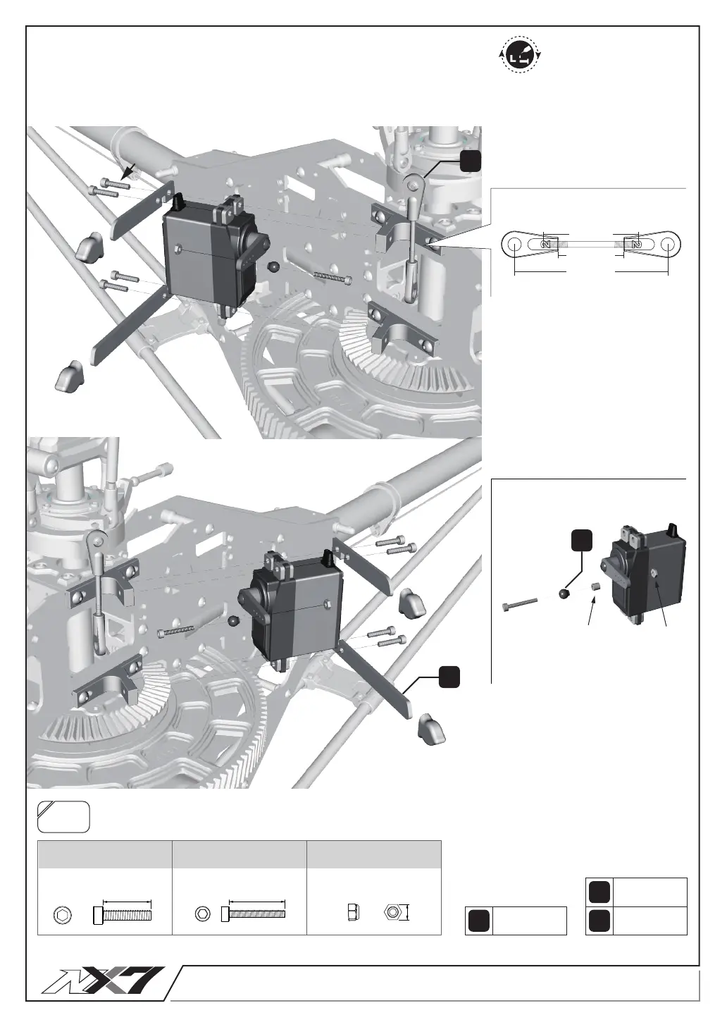 1. サーボによりプッシュロッド長が異なります。P.38を参照し、最適な長さに調整してください。