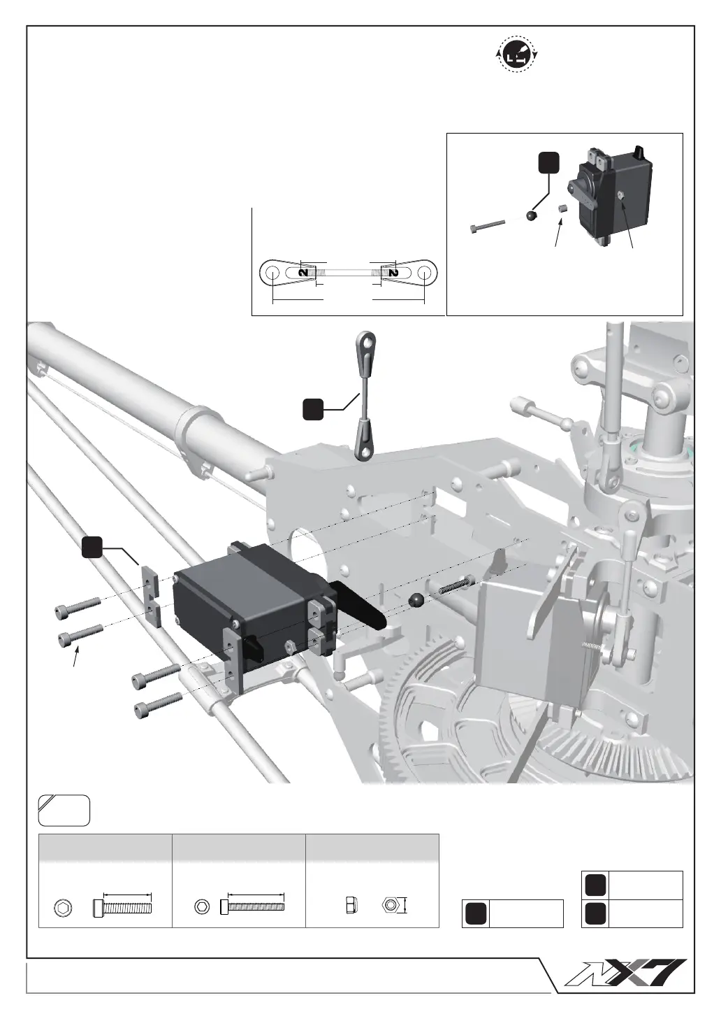 1. サーボによりプッシュロッド長が異なります。P.38を参照し、最適な長さに調整してください。