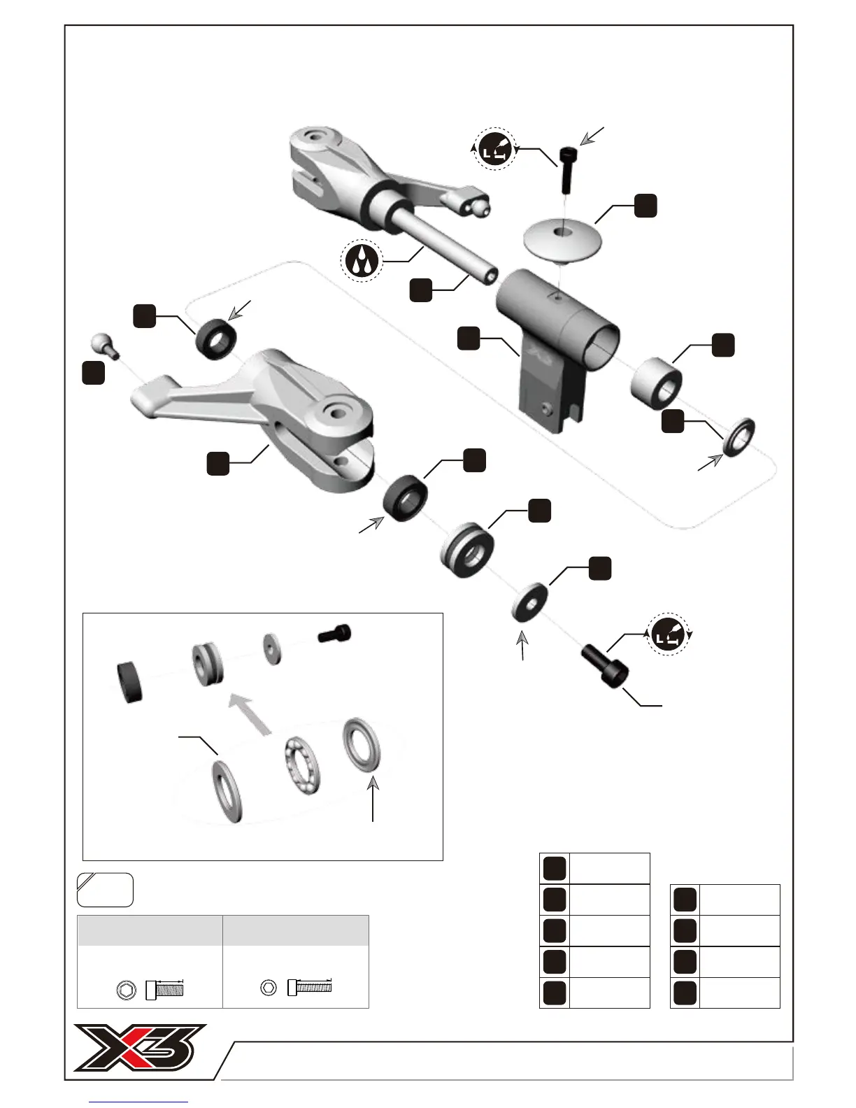 M2.6x6螺絲請確實上膠並適當鎖緊,不可硬鎖以避免造成螺絲受損,影響飛行安全性。