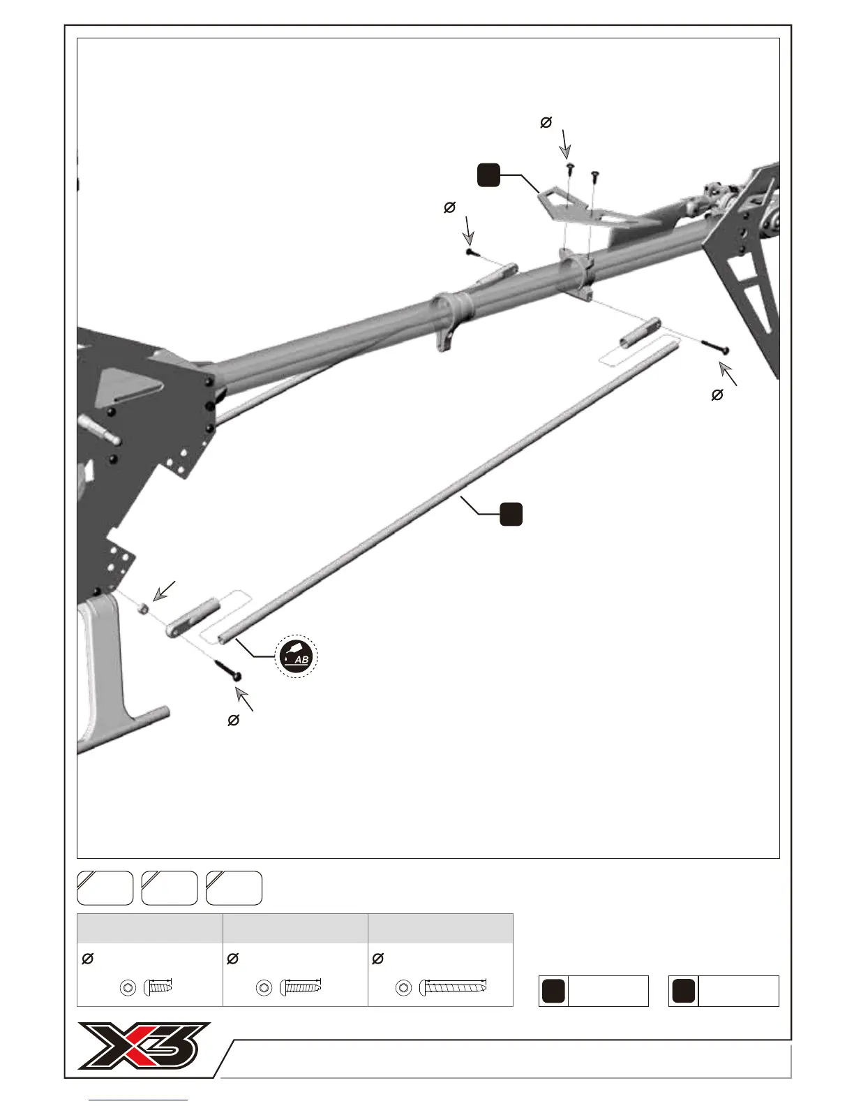 Use AB glue to glue together the support ends and tail support rod.