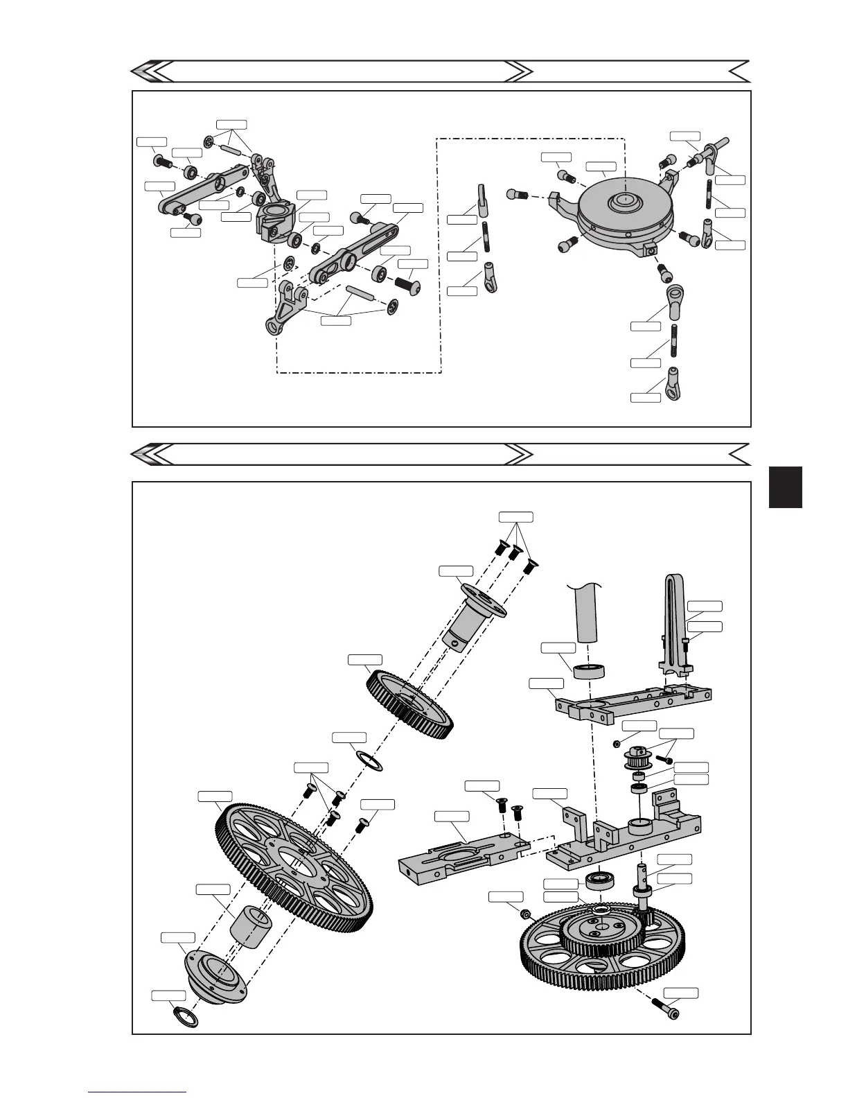 GAUI X5 - Swash Plate; Washout Arms Assembly; 十字盤;相位器分解圖; Main Gear; Main Mast Base Assembly; 主齒盤;主軸座分解圖
