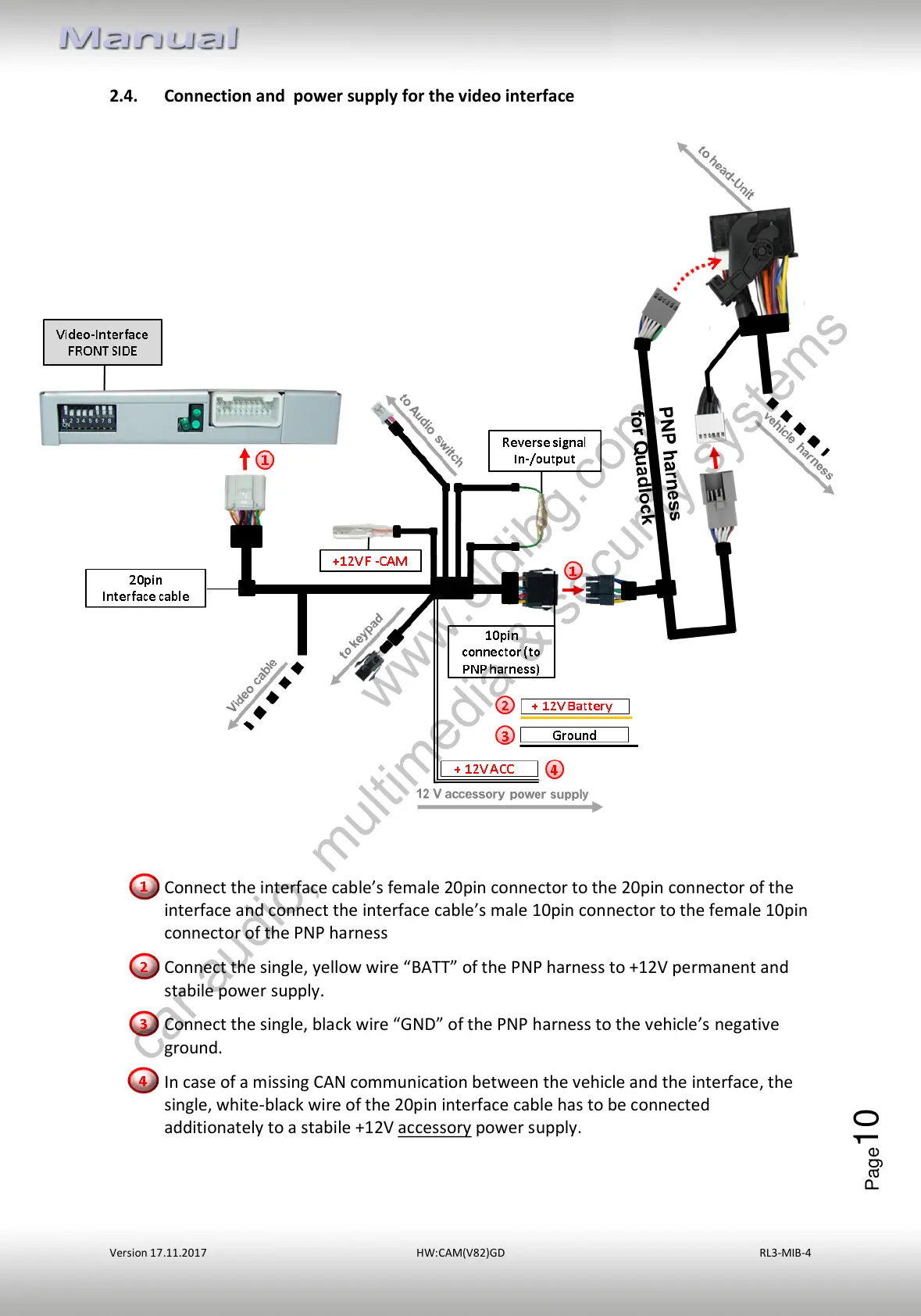 2.4. Connection and power supply for the video interface