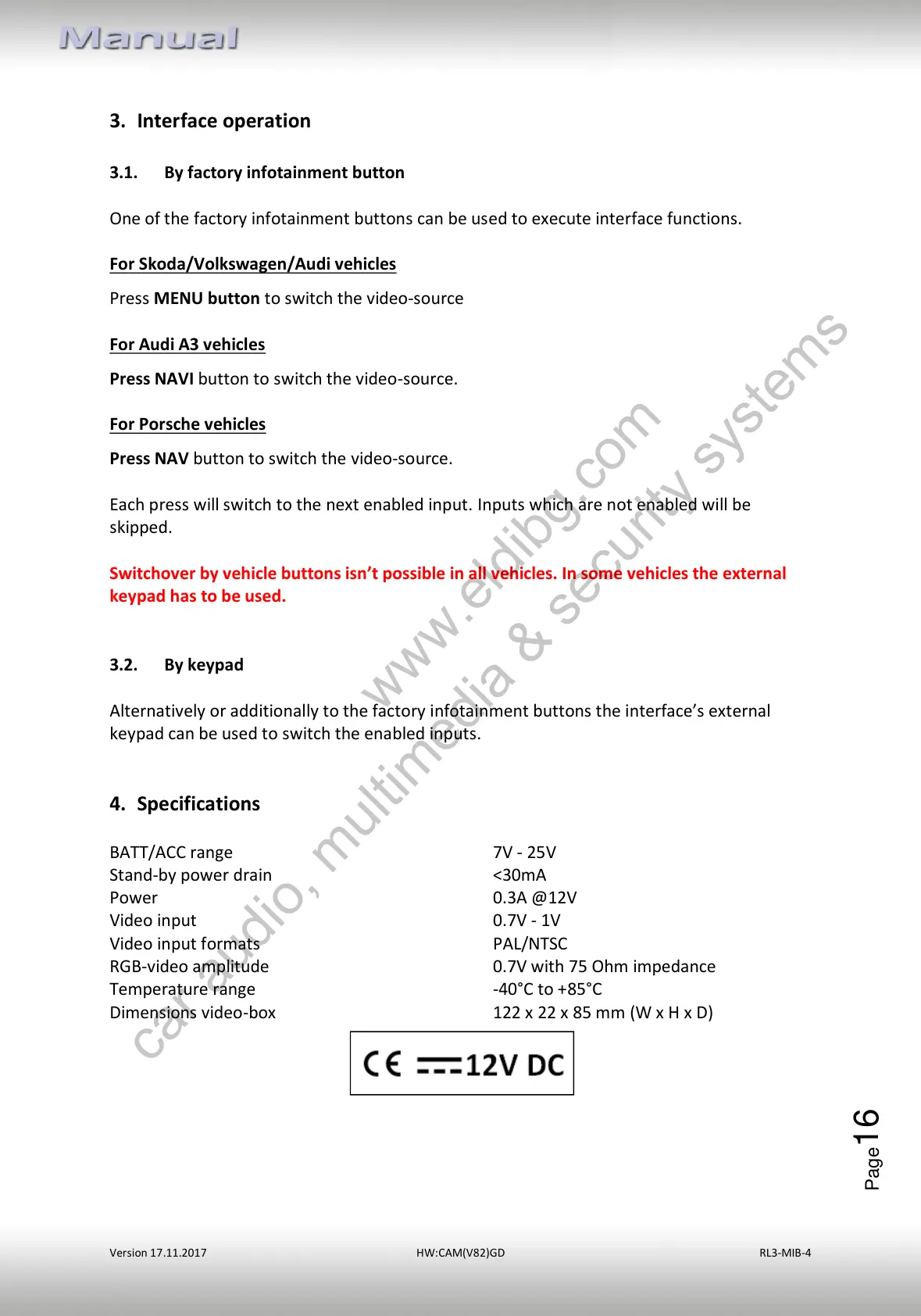 Dimensions video-box 122 x 22 x 85 mm (W x H x D)