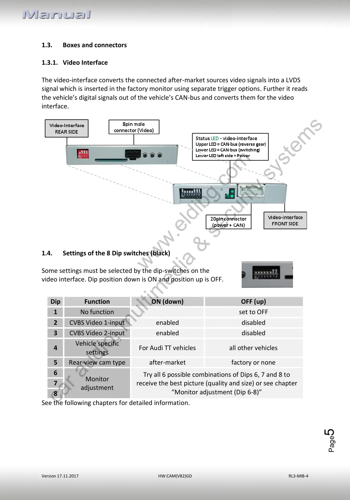 1.4. Settings of the 8 Dip switches (black)