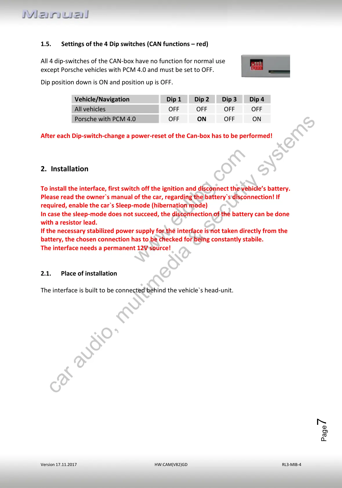 After each Dip-switch-change a power-reset of the Can-box has to be performed!