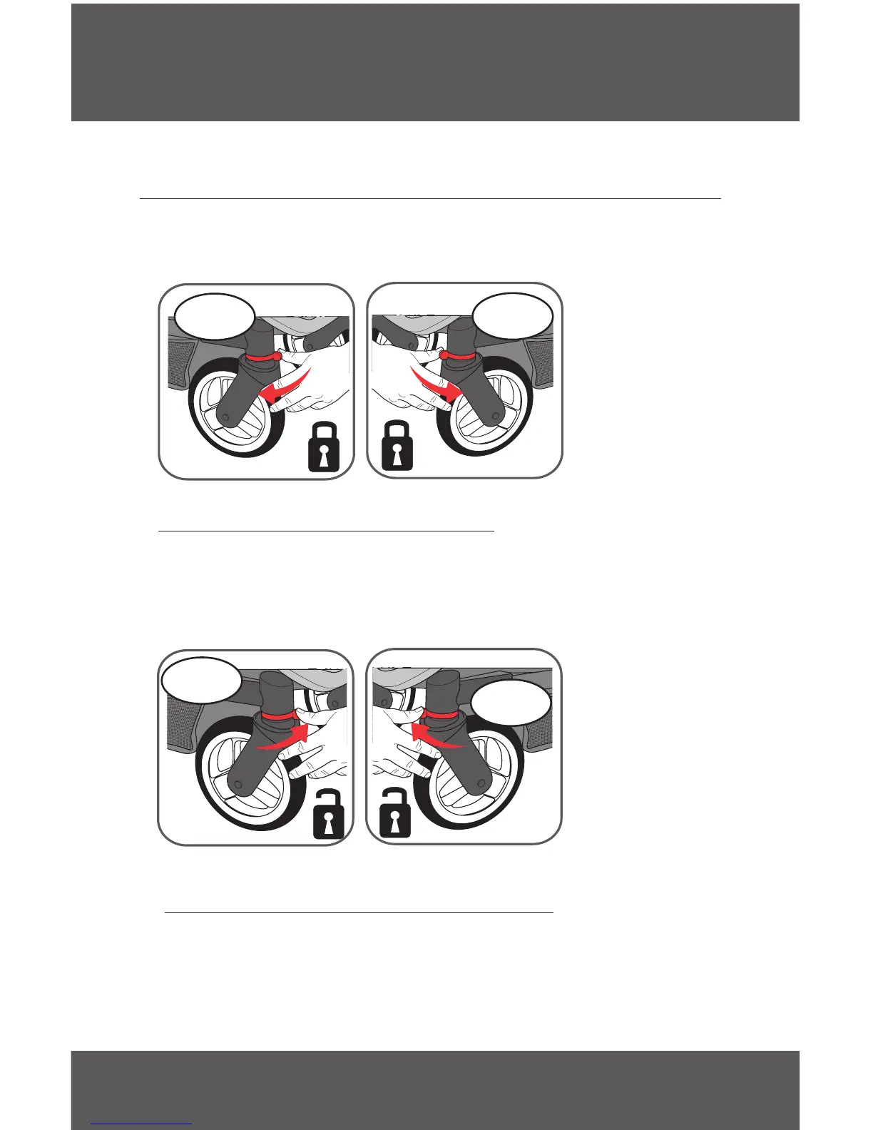 Swivel wheels lock for use on rough surfaces, such as gravel or