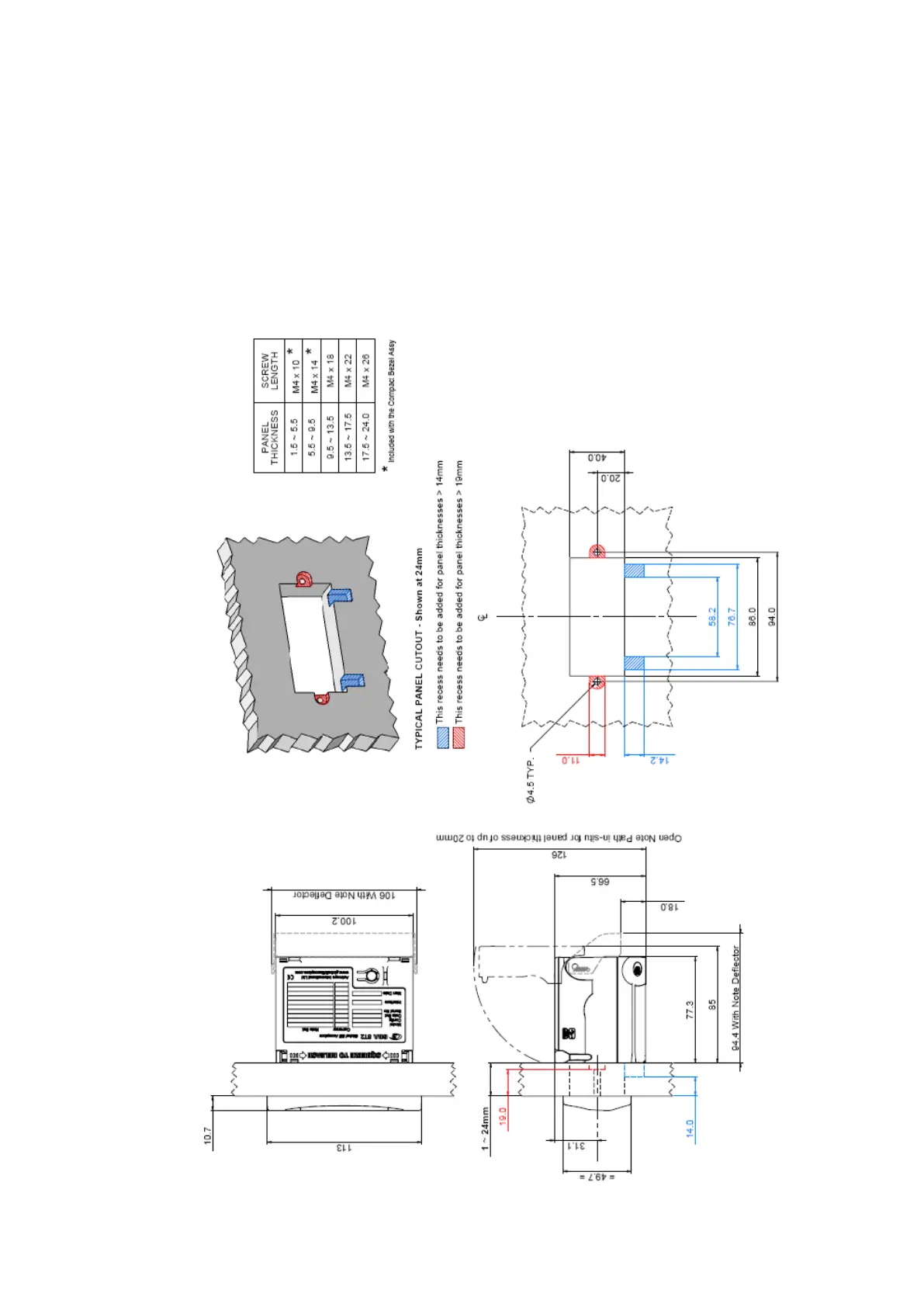 GBA ST2 - Dimensions: Compact Bezel; Panel Cutout Specifications