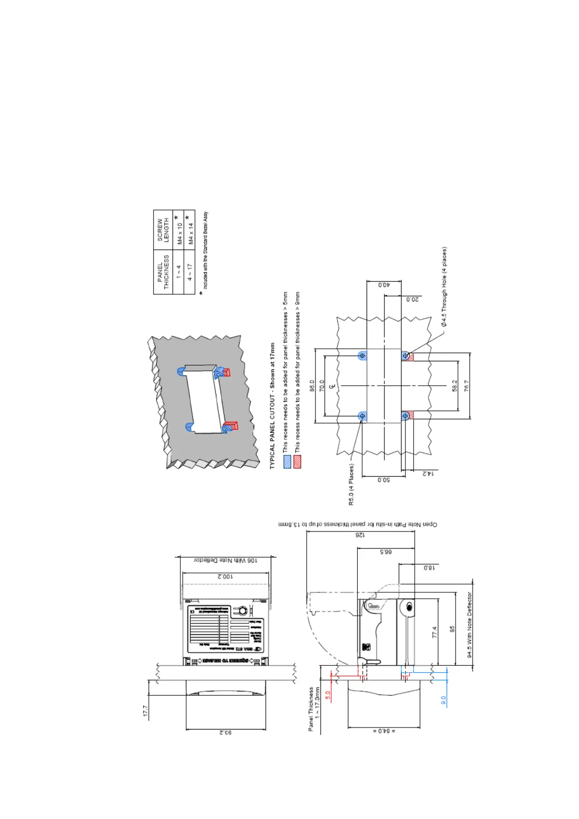 GBA ST2 - Dimensions: Standard Bezel; Panel Cutout Specifications