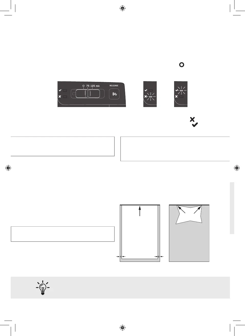 2 Lamineringsmaskinen reagerer med et enkelt bip og en række korte blink