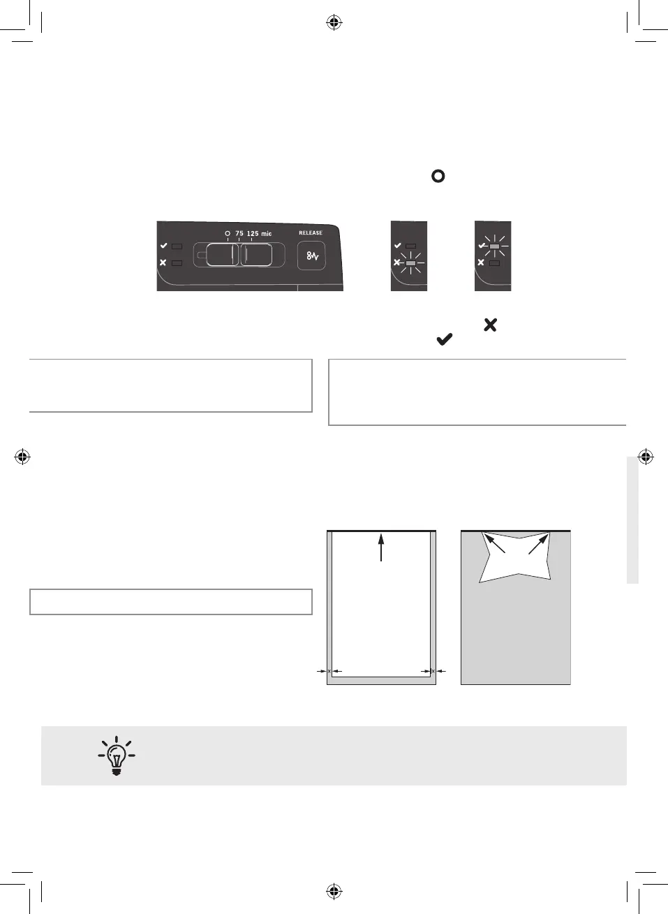 4 Laminatorn brjar värmas upp en orange lampa tänds till hger om krysset ‘