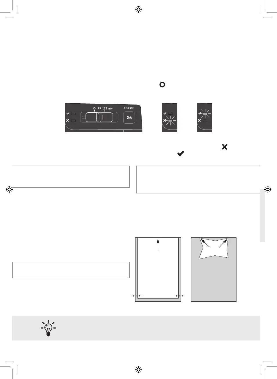 When the laminator is ready to use the green light next to the ‘tick ’ is illuminated b and a