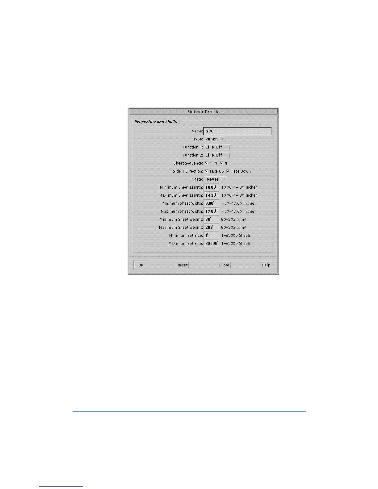 Figure 1-11: The Finisher Profile Window, Properties and Limits Screen