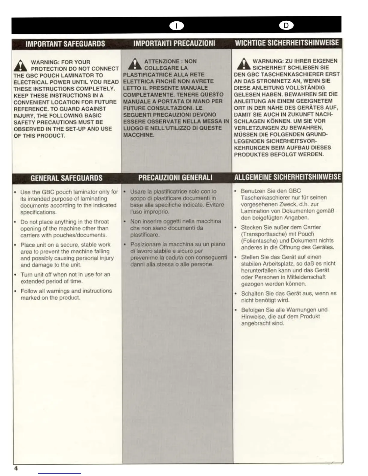 GBC 3500 - Important Safeguards; Pre-Connection Safety