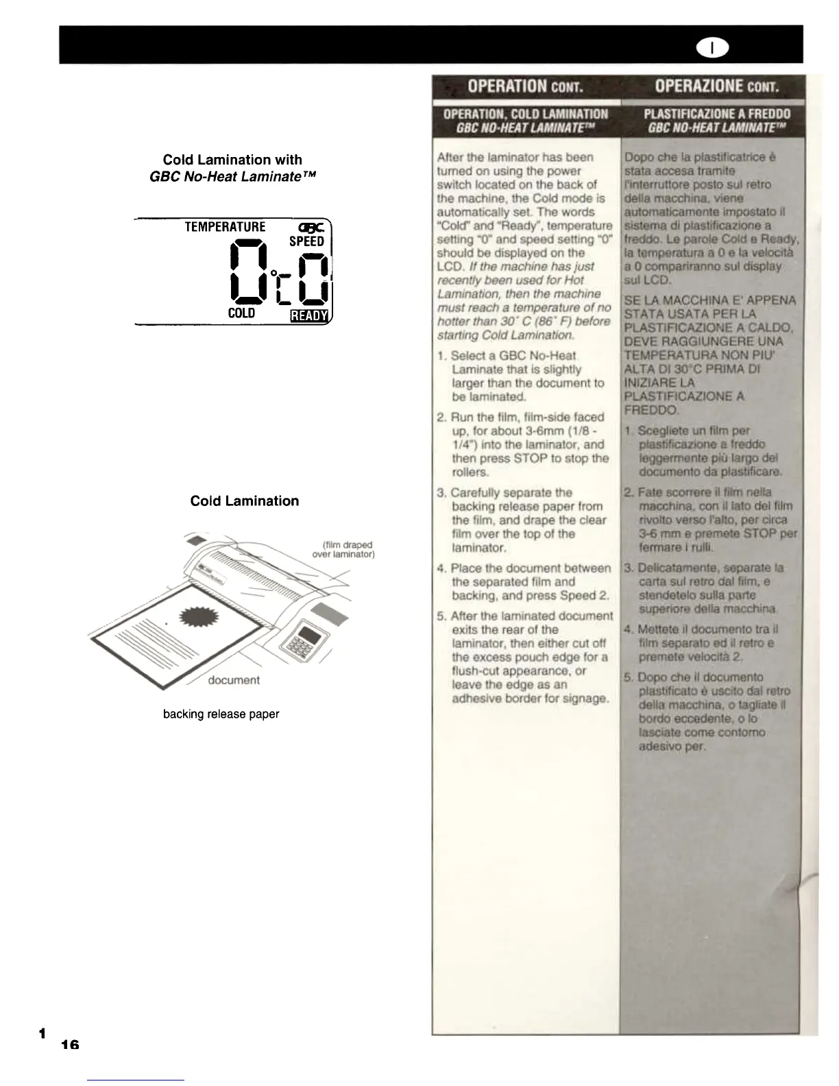 GBC 3500 - Cold Lamination Operation; Cold Laminating Procedure