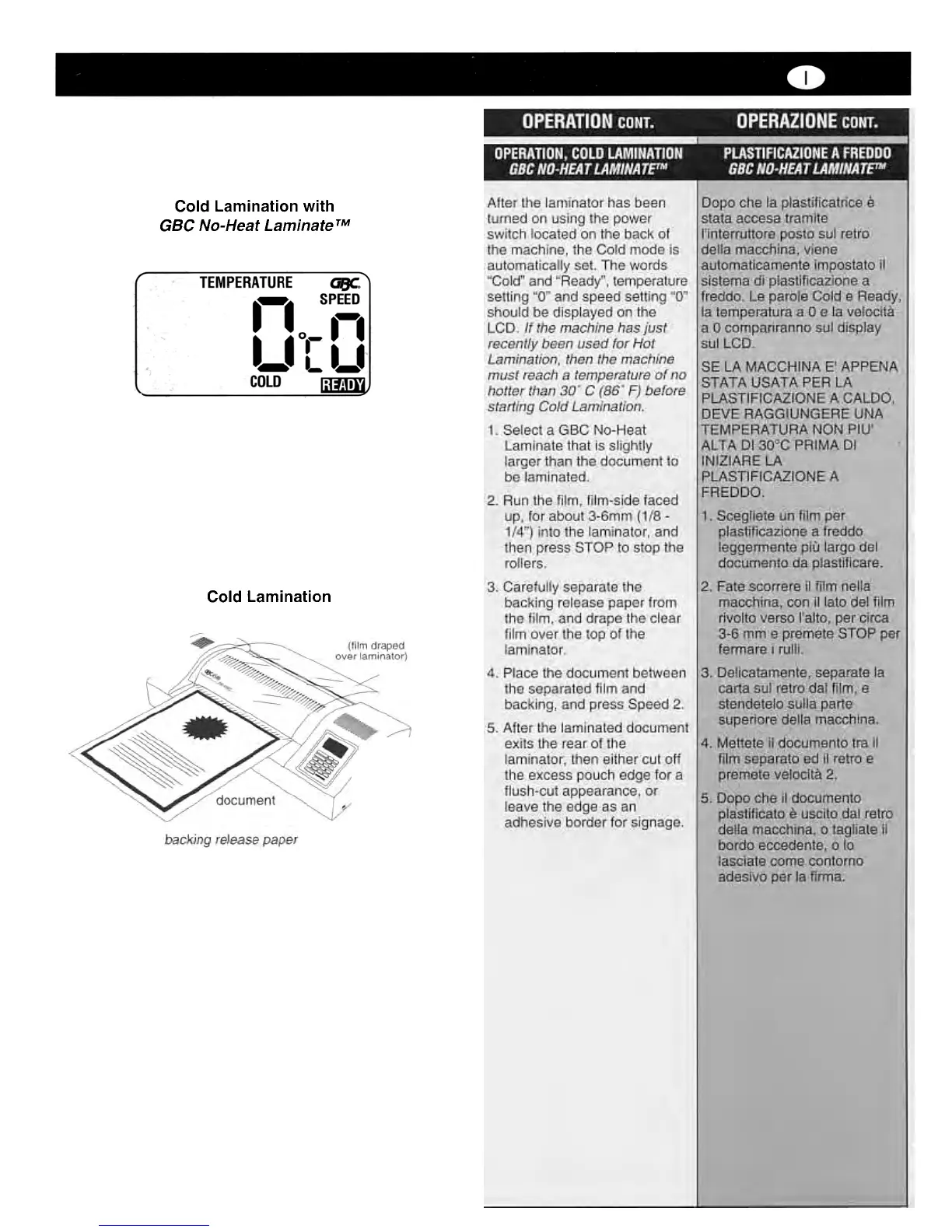 GBC 4500 - Operation (Continued); Cold Lamination Process