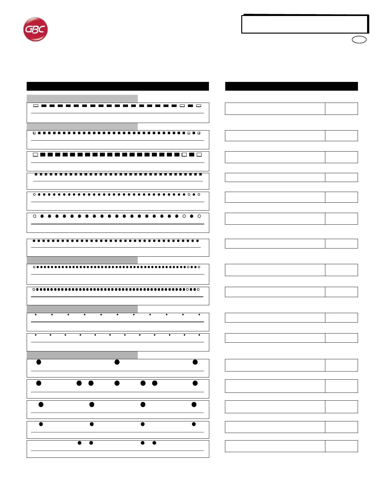 ©2016 GBC, Lake Zurich, Illinois - Todos os direitos reservados. Os gráficos não representam as dimensões ou os espaçamentos reais dos padrões de perfuração.