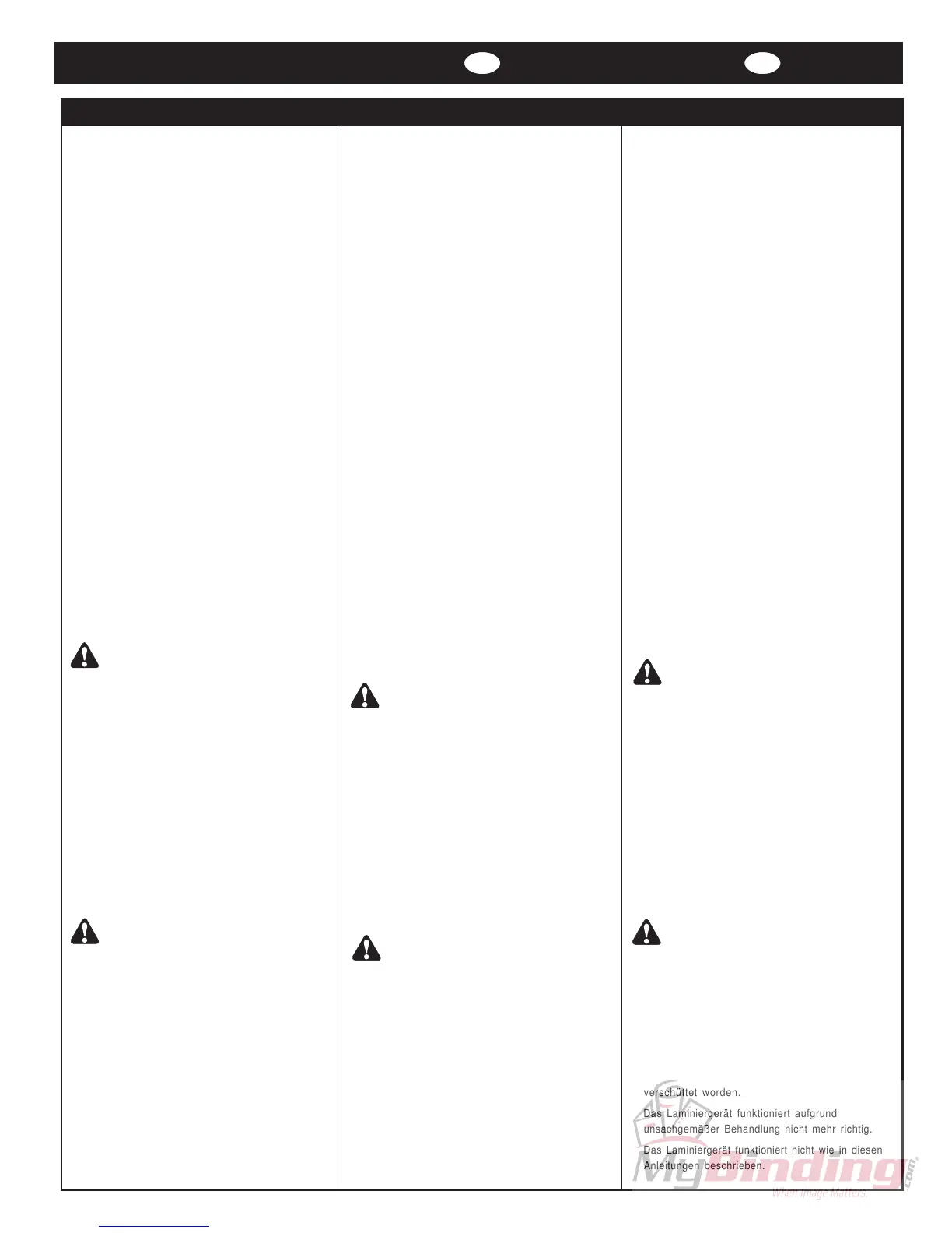 Das Laminiergerät darf nicht benutzt werden, wenn das