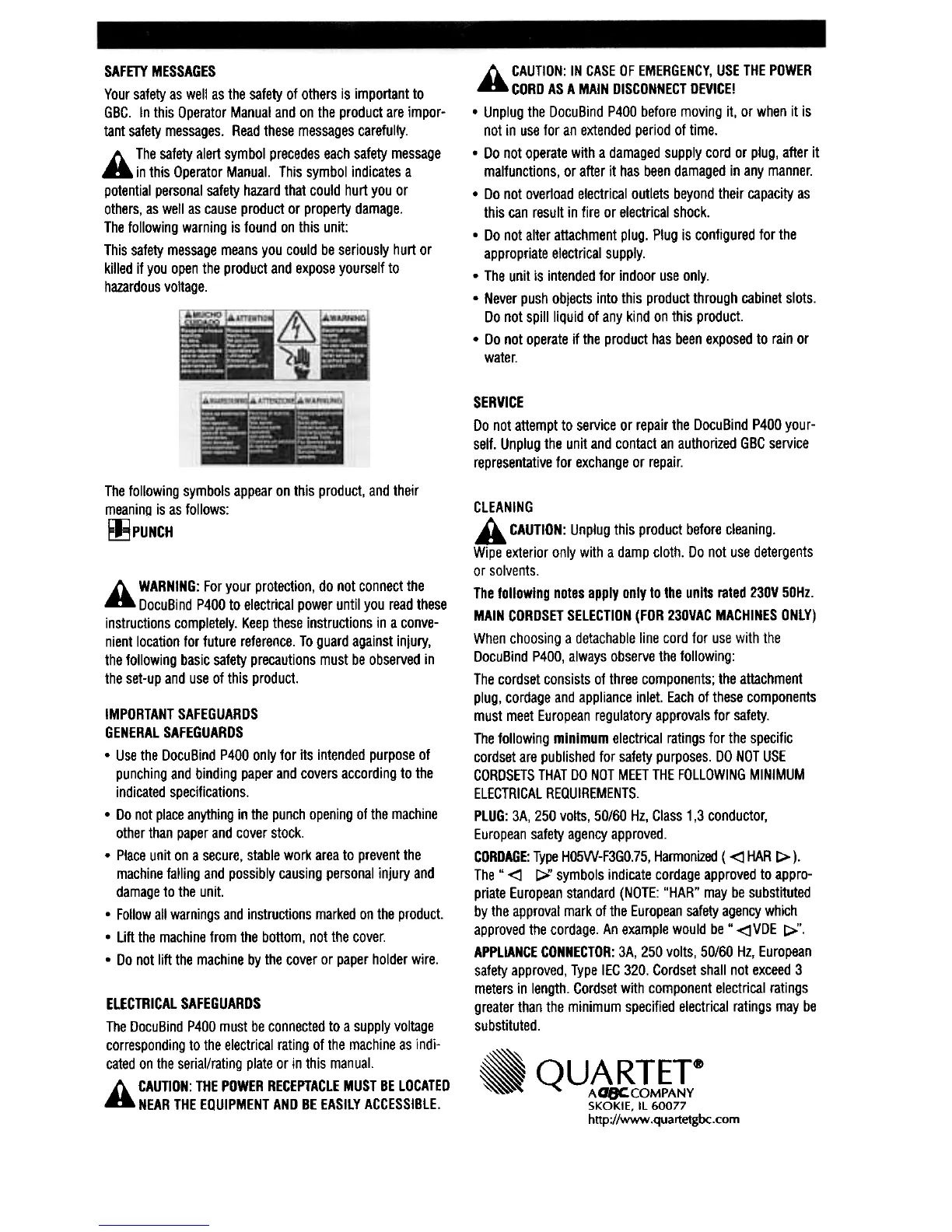 ..DocuBind P400 to electrical power until you read these