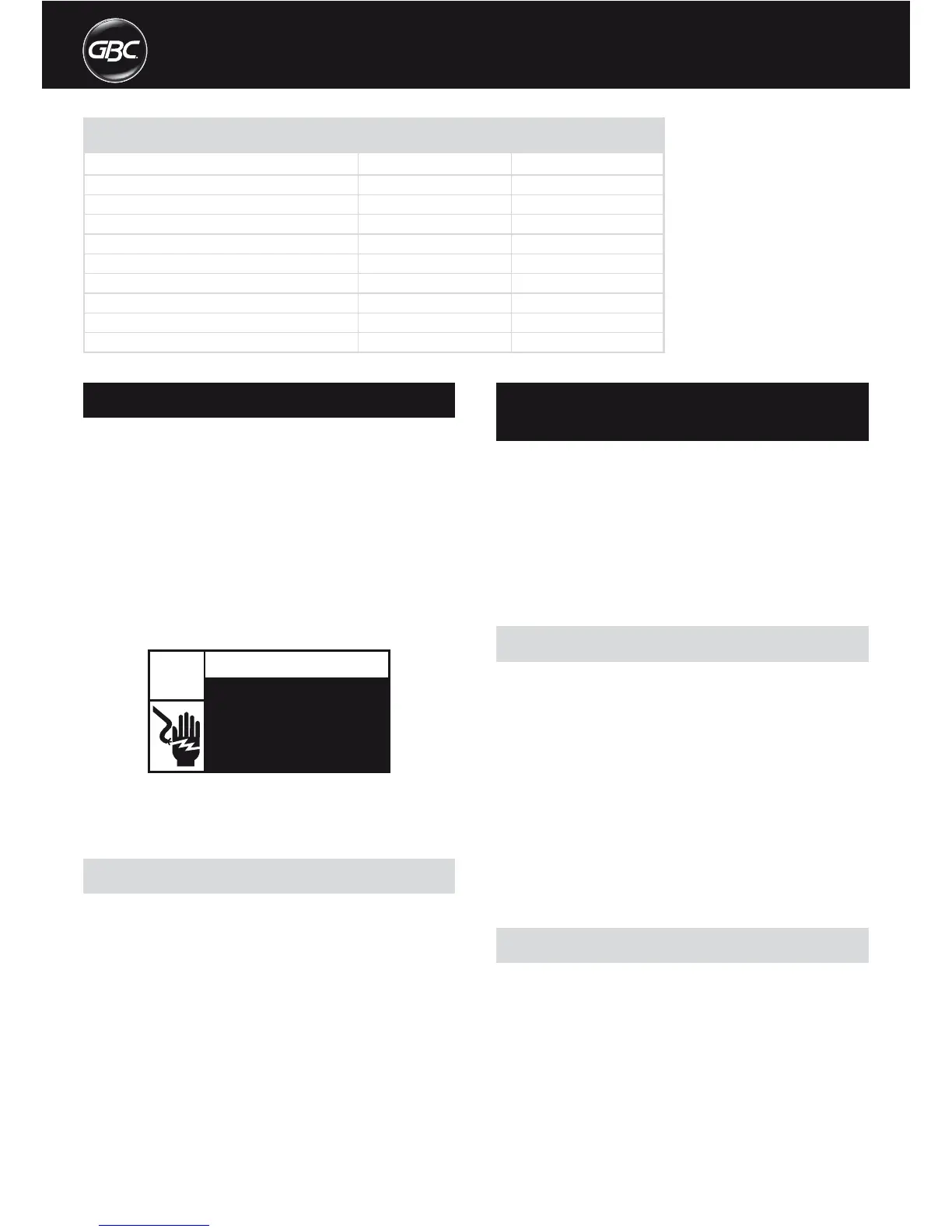 Débranchez l’appareil et contactez un représentant GBC