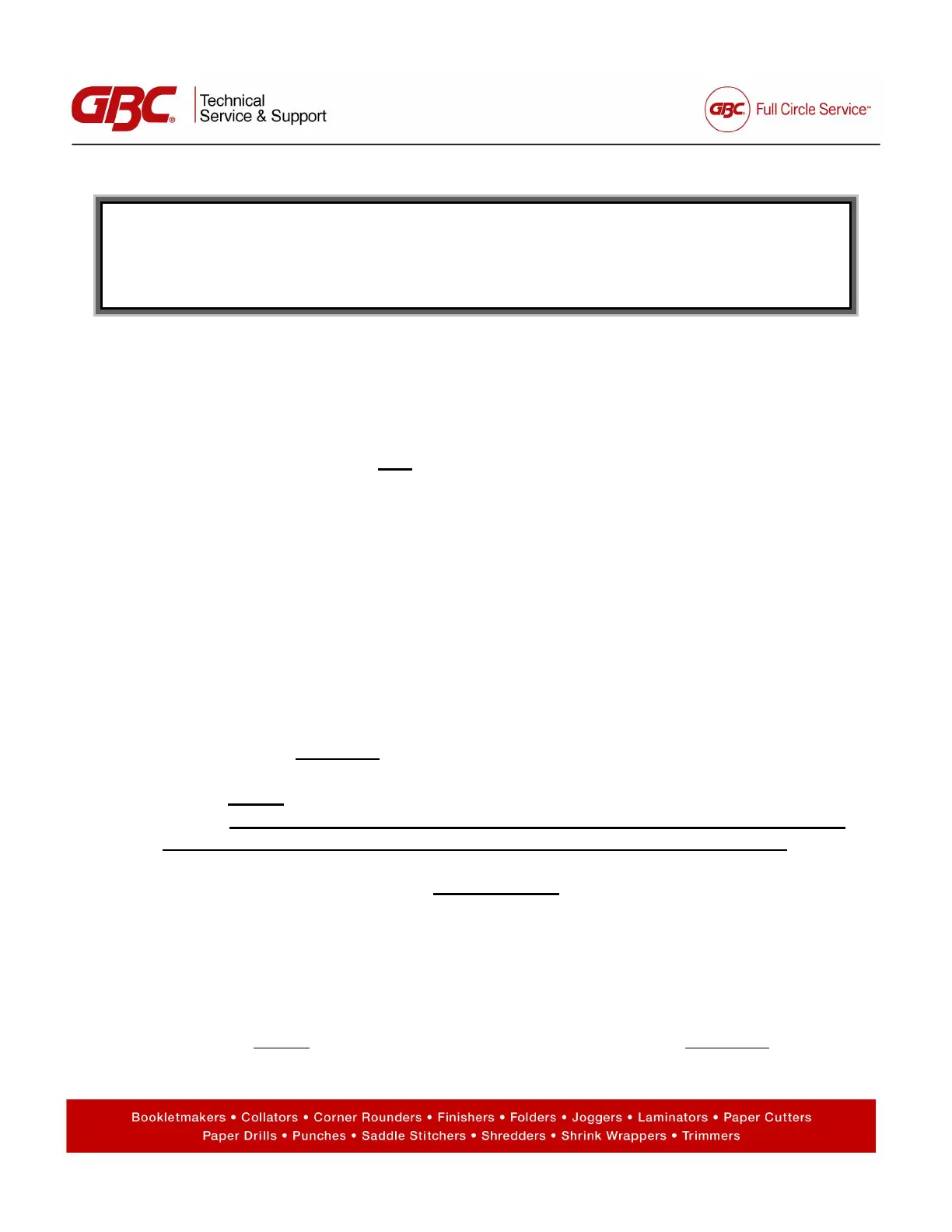 Avenue, Pleasant Prairie, WI 53158 • PH 800-723-4000 • fax 888-821-3736 • www.gbc.com