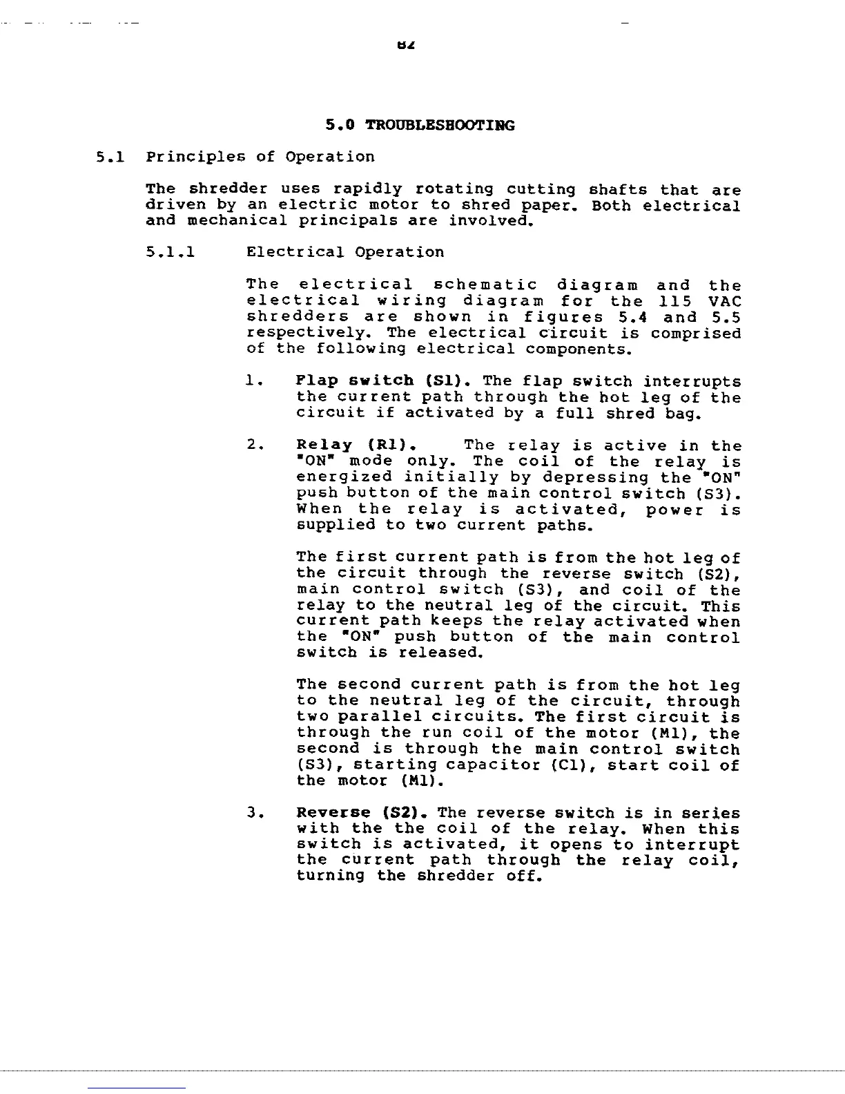 GBC Shredmaster 1236S - 5.0 TROUBLESHOOTING; 5.1 Principles of Operation; 5.1.1 Electrical Operation - Components