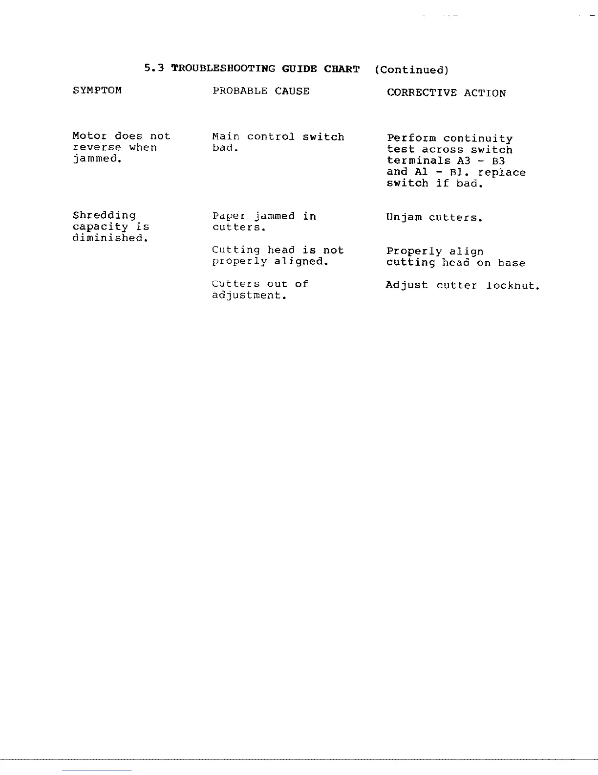 GBC Shredmaster 1236S - 5.3 Troubleshooting Guide Chart - Performance Issues