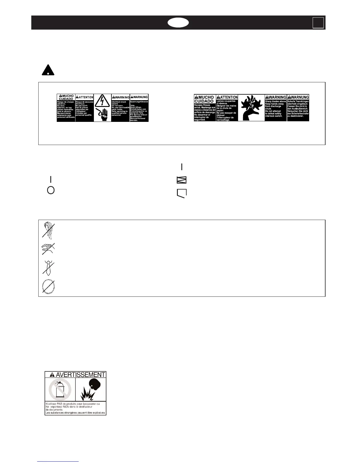 • Débranchez le destructeur avant de le déplacer, avant de vider la corbeille ou en cas de non utilisation prolongée.