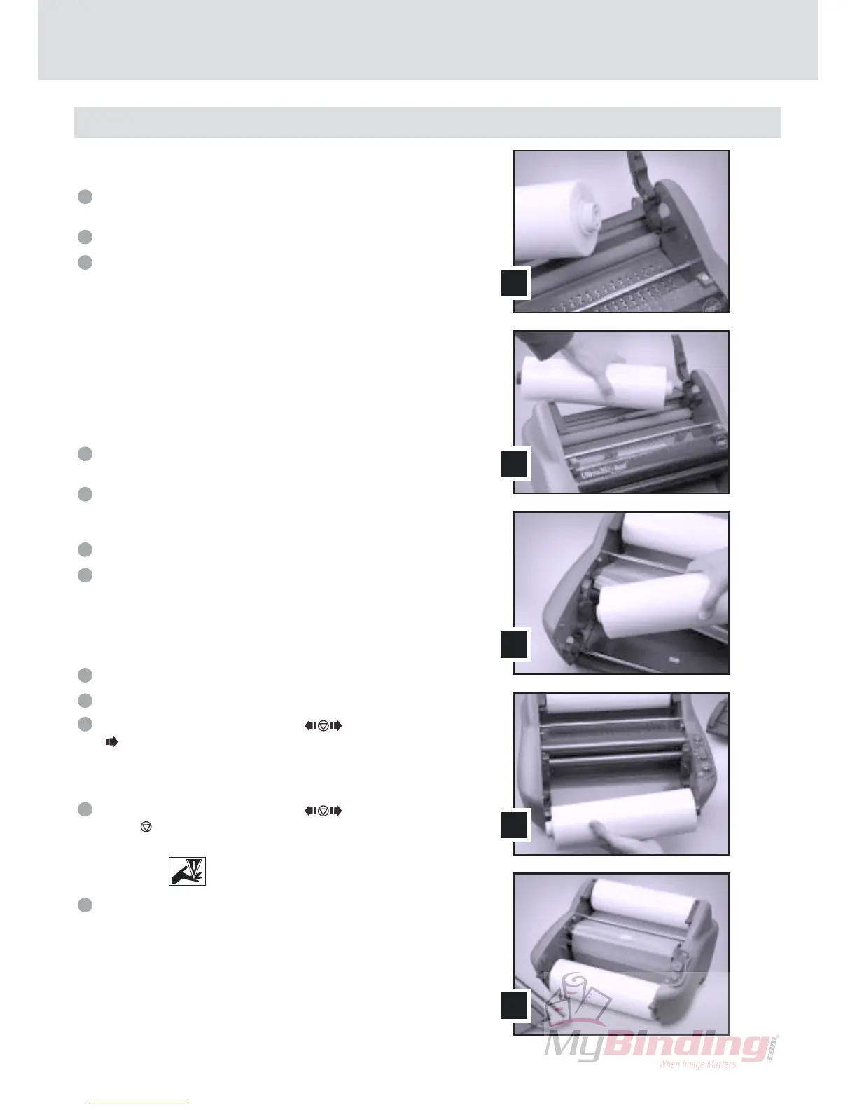 GBC laminating film) on the feed table, gently pushing the film
