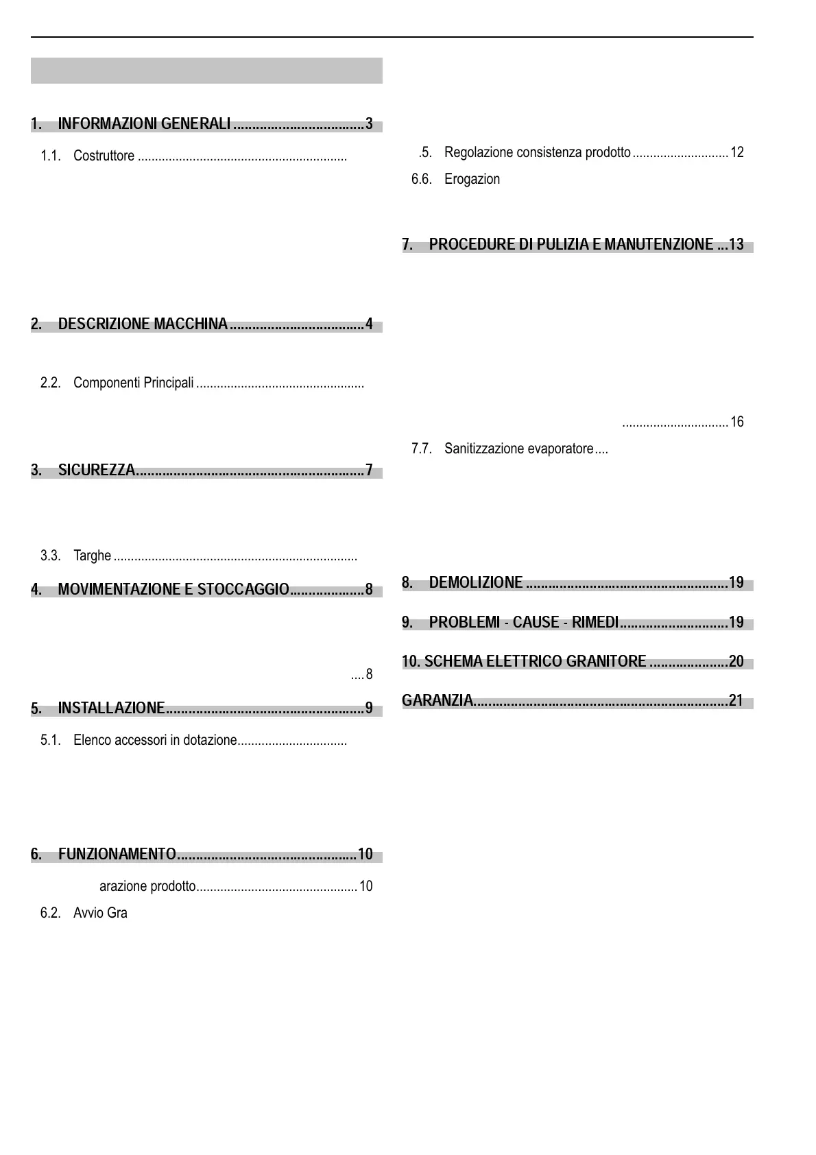 7 .9 .1. P ulizia condensatore Granitore. ....................................18