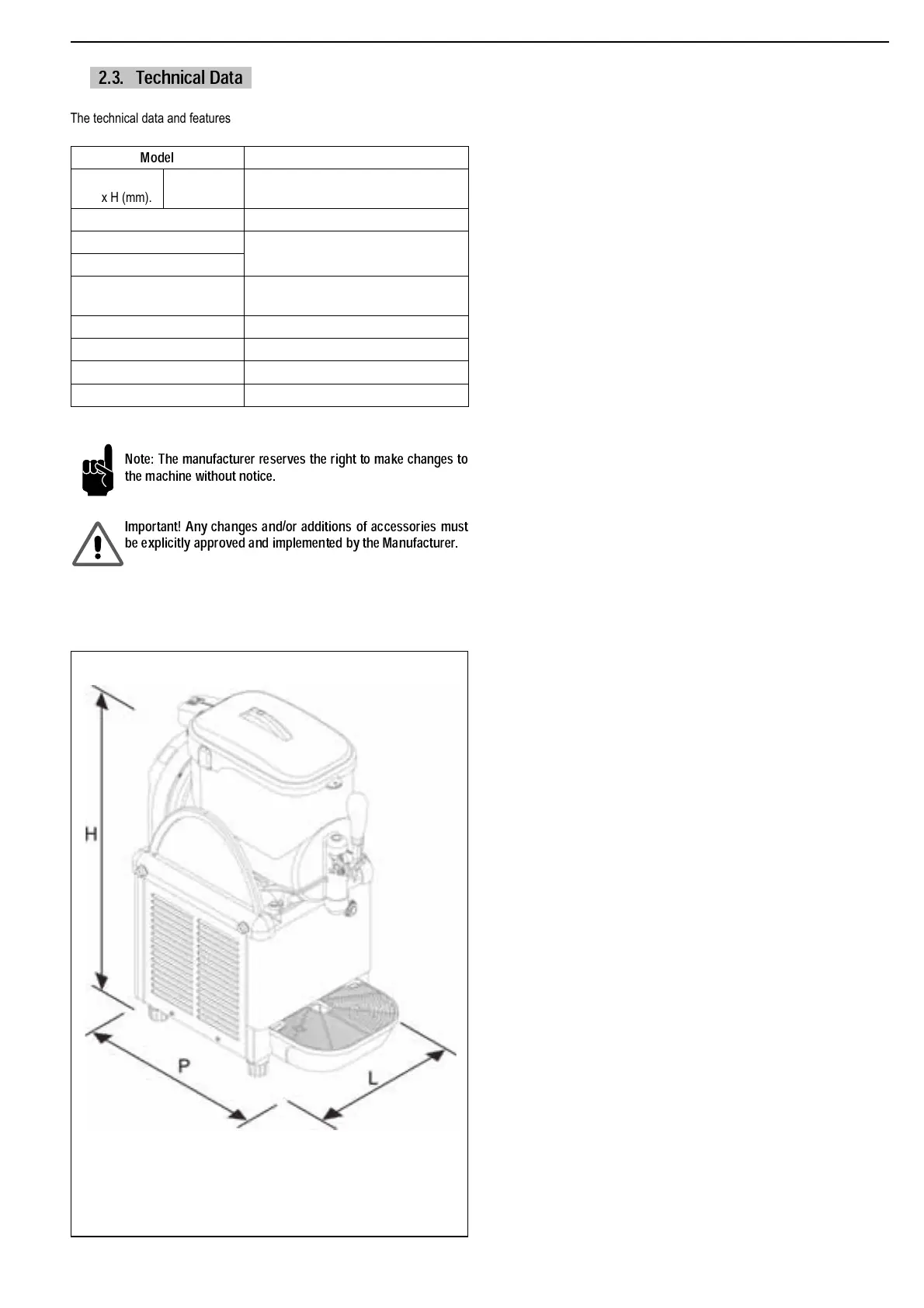 C ap acity of each bow l (l.). 2.5 (L iq uid p roduct)