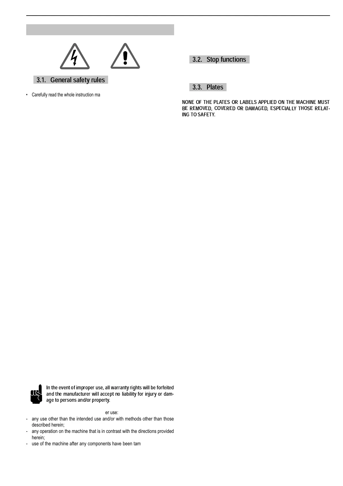 - use the machine other than as directed in this manual.