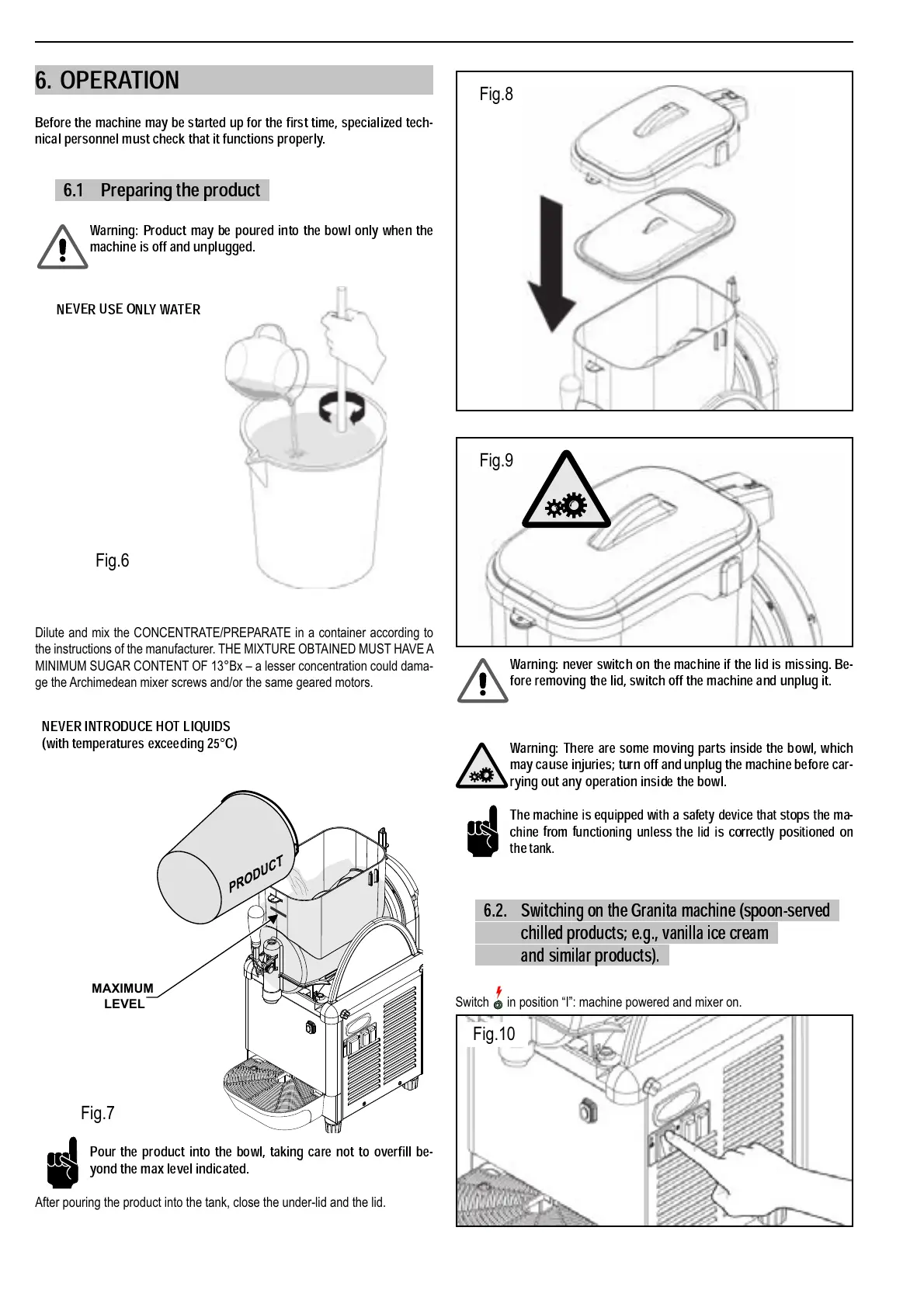 S w itch in p osition “I”: machine p ow ered and mix er on.