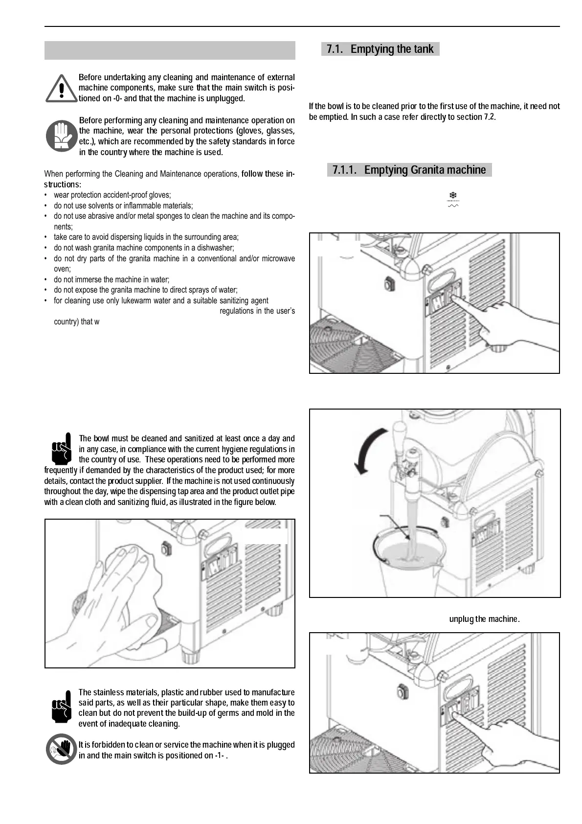 • do not ex p ose the granita machine to direct sp ray s of w ater;