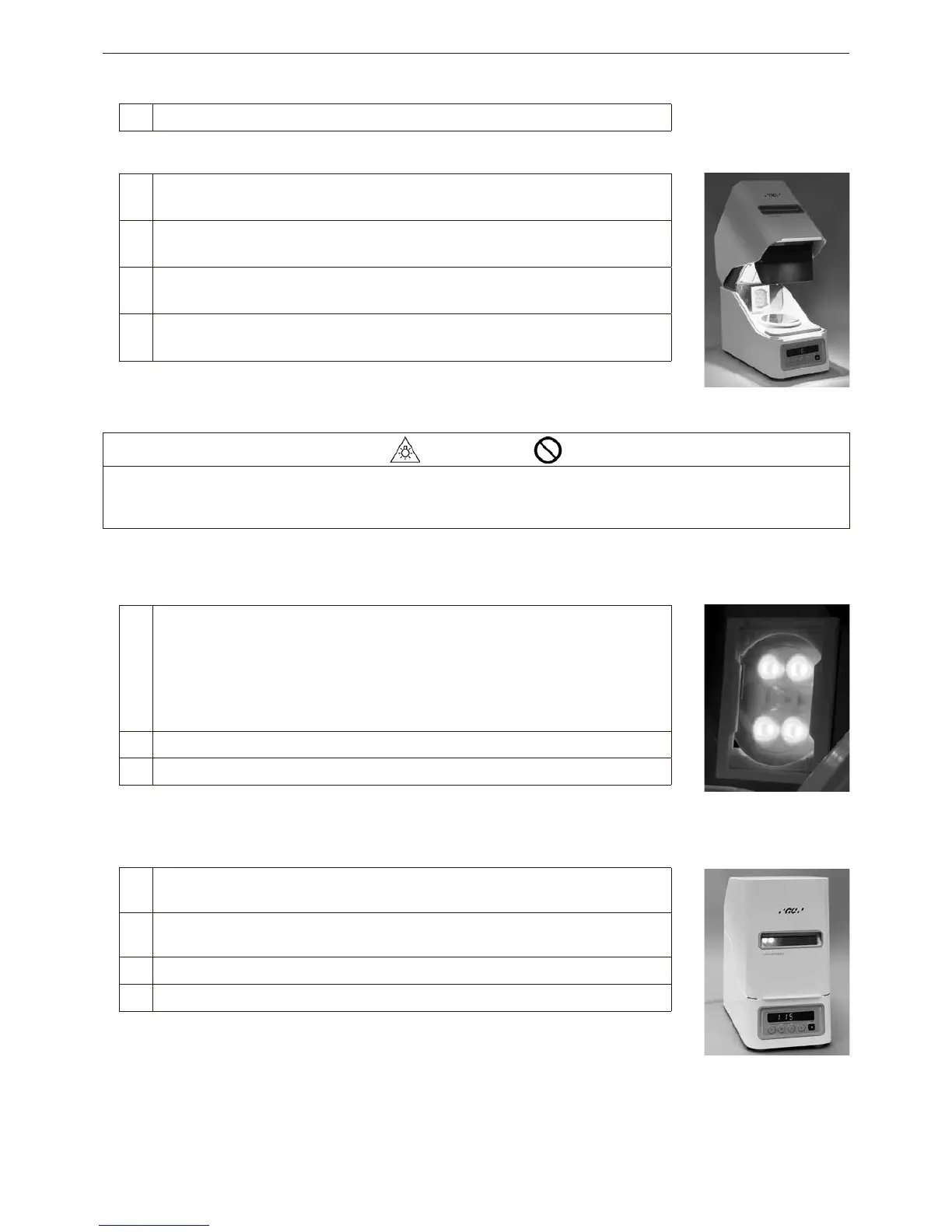 3) Appuyez sur le bouton de la durée de polymérisation (une minute), la porte ouverte, pour vérifi er ce qui suit :