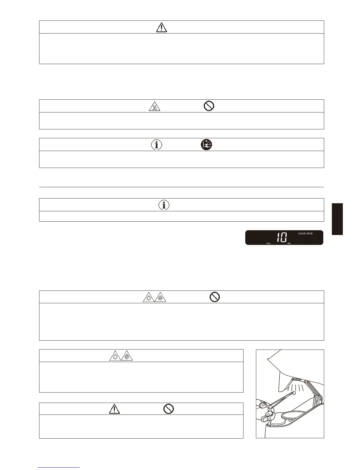 Lors de l'ouverture/la fermeture de la porte, veillez à ne pas laisser votre main ou une partie de