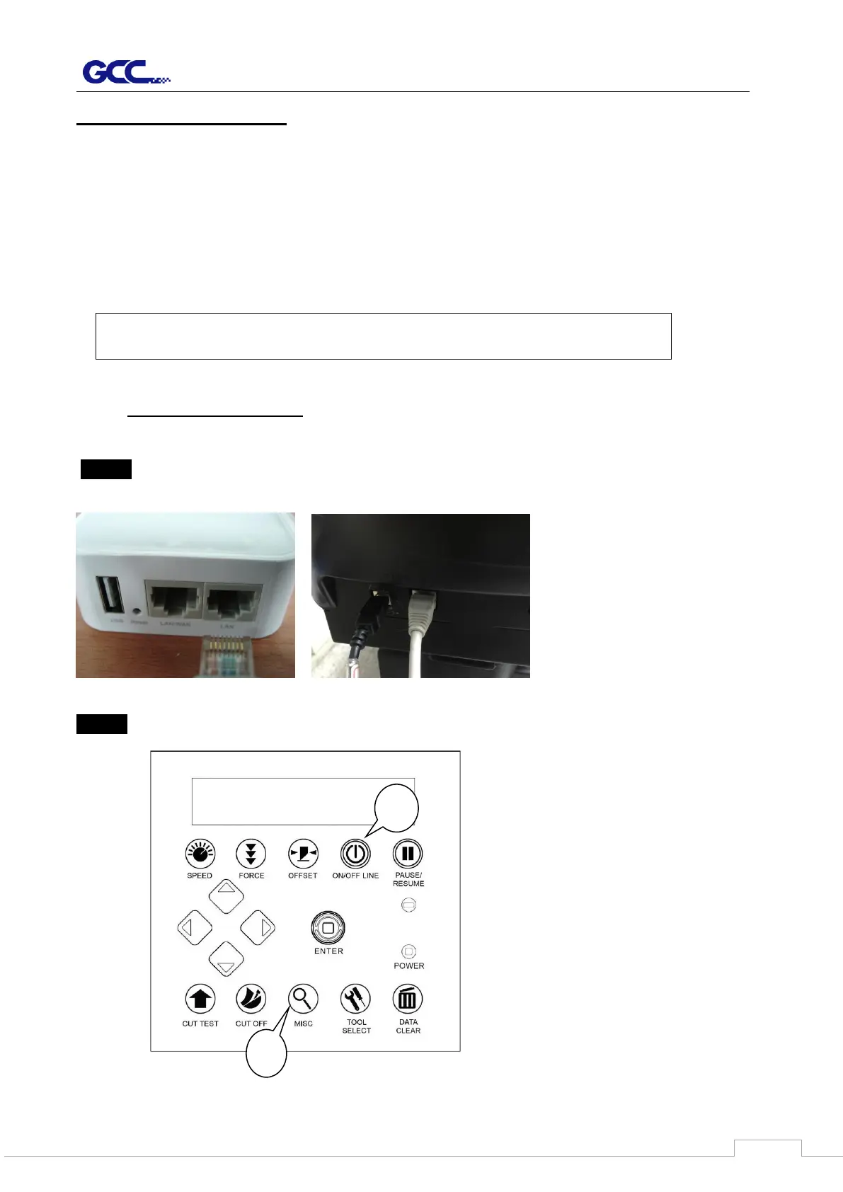 Step 1 Connect the LAN port and Ethernet port on GCC cutting plotter with RJ45 Ethernet