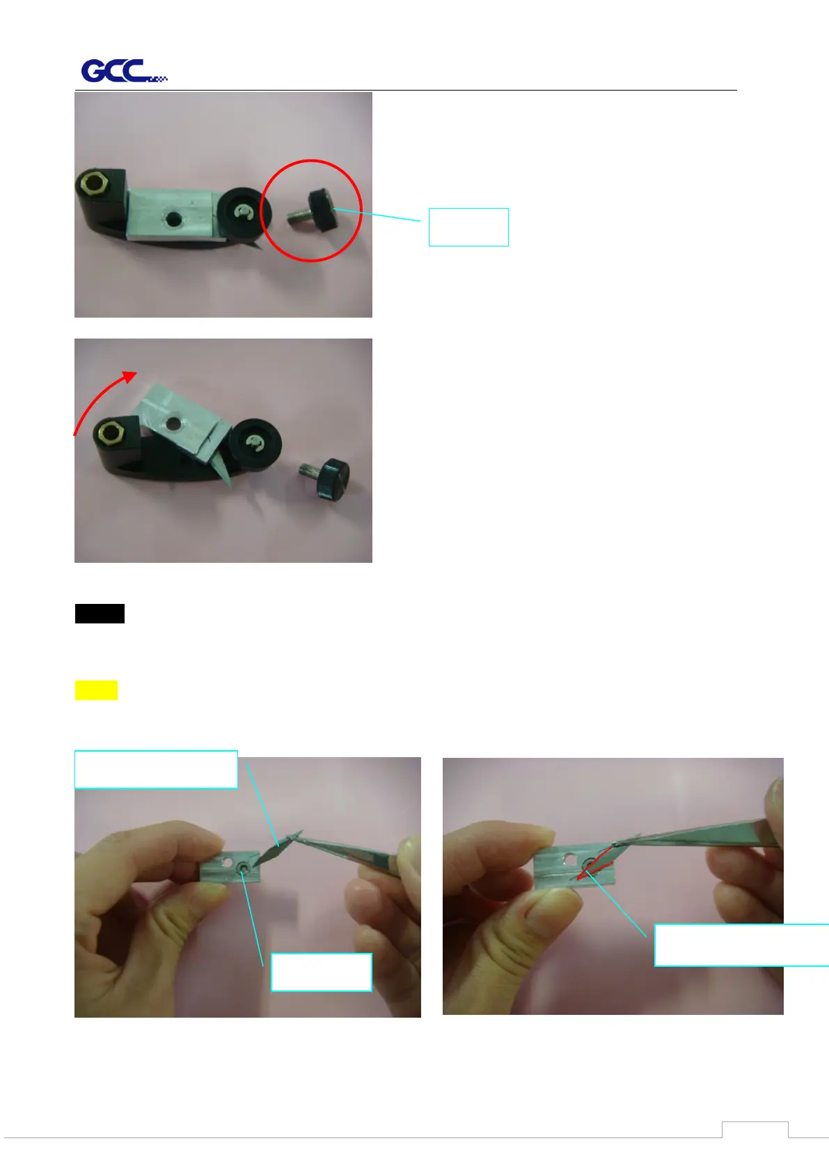 magnet on it, and replace it with a new Cut-off Blade along the track highlighted in red using
