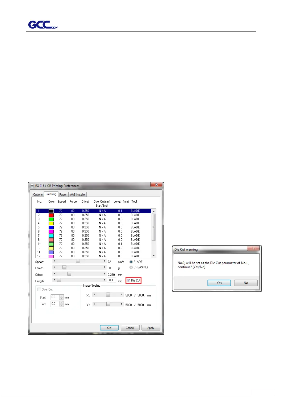 use the first 8 color for this function. If you choose Color No.1 and click the Die Cut function,